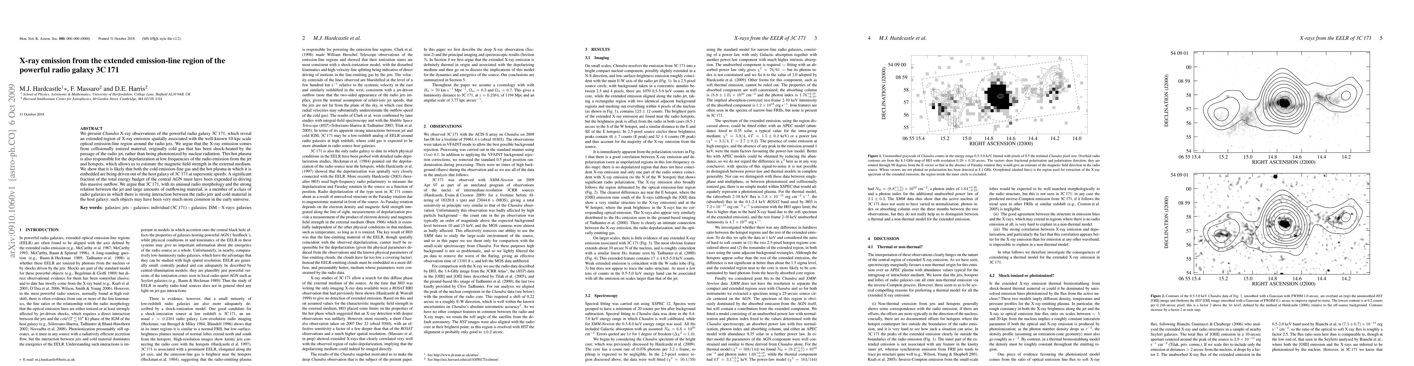 New Chandra X-ray observations reveal an extended region of hot plasma associated with the radio jets of 3C171, suggesting a strong interaction between the jets and cold material in the host galaxy.