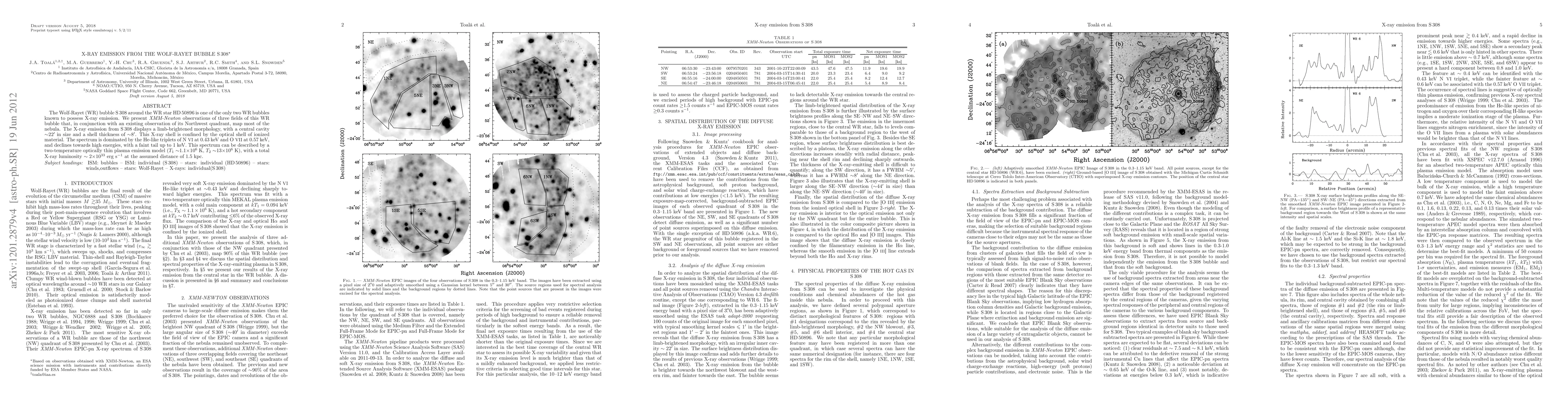 The XMM-Newton observations reveal that the Wolf-Rayet bubble S 308 exhibits a limb-brightened X-ray shell, with a spectrum dominated by He-like triplets and a two-temperature plasma emission model, indicating a total X-ray luminosity of approximately 2x10^33 erg/s.