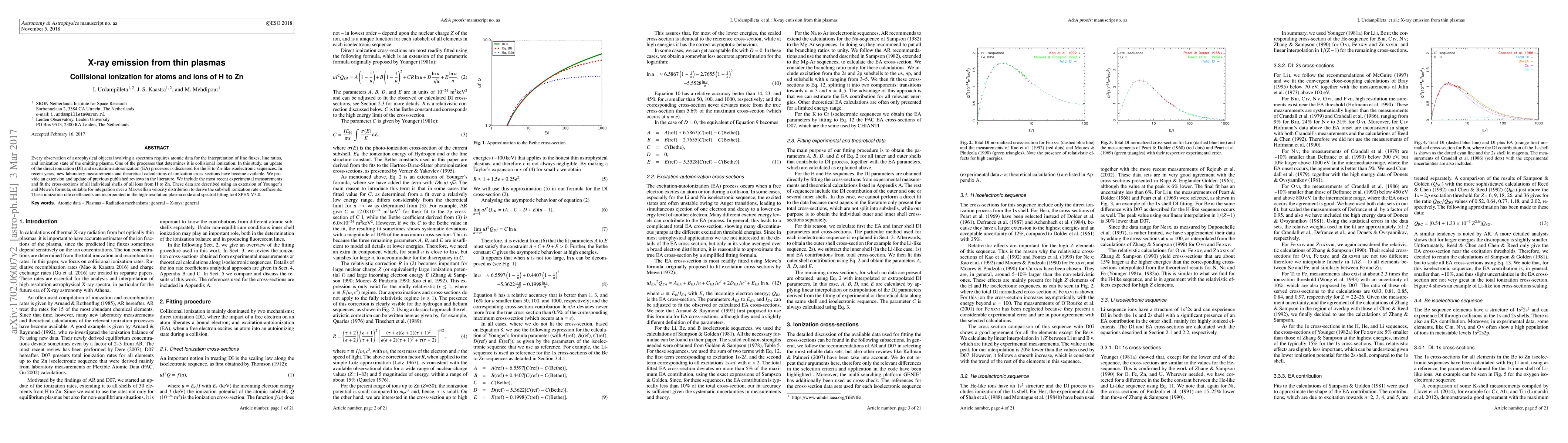 This paper updates collisional ionization processes for atoms and ions from hydrogen to zinc in astrophysical plasmas, incorporating recent experimental and theoretical data. The study fits ionization cross sections using an extended formula and integrates these into the SPEX V3.0 spectral fitting tool.