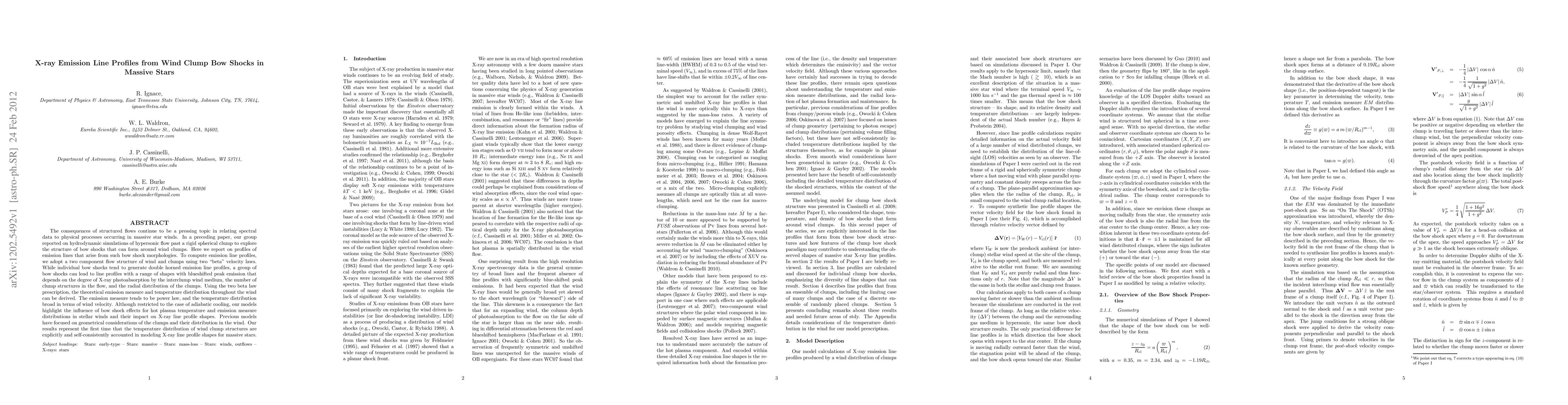 This paper investigates the emission line profiles from bow shocks formed around wind clumps in massive stars, using hydrodynamic simulations and a two-component flow model. It reveals that bow shocks generate complex X-ray line profiles influenced by the clump distribution, X-ray absorption, and wind velocity, providing a more detailed temperature and emission measure distribution than previous models.