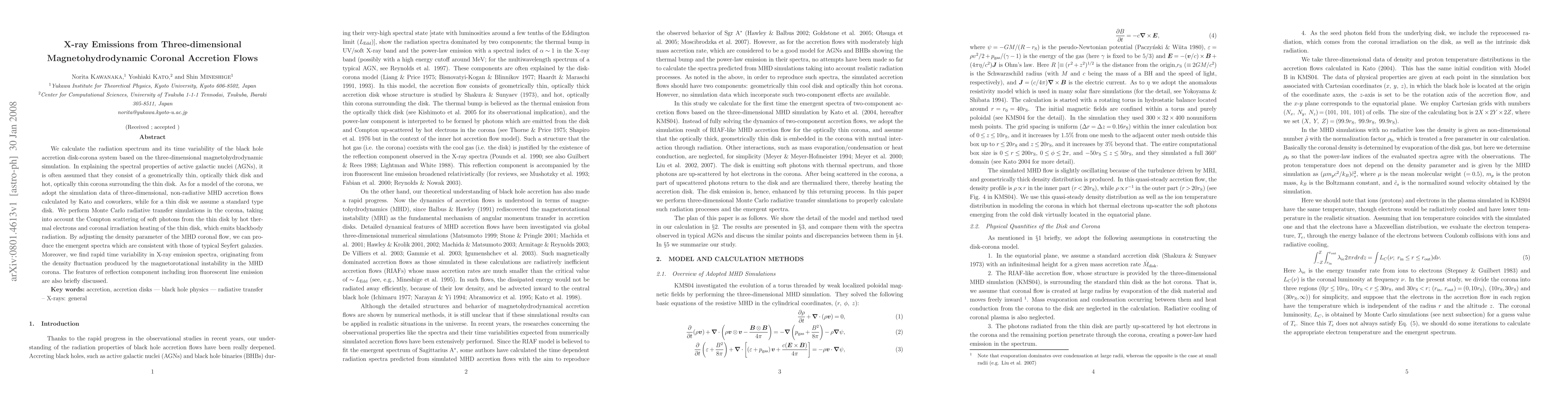 We calculate the radiation spectrum and its time variability of the black hole accretion disk-corona system based on the three-dimensional magnetohydrodynamic simulation. In explaining the spectral properties of active galactic nuclei (AGNs), it is often assumed that they consist of a geometrically thin, optically thick disk and hot, optically thin corona surrounding the thin disk. As for a model of the corona, we adopt the simulation data of three-dimensional, non-radiative MHD accretion flows calculated by Kato and coworkers, while for a thin disk we assume a standard type disk. We perform Monte Carlo radiative transfer simulations in the corona, taking into account the Compton scattering of soft photons from the thin disk by hot thermal electrons and coronal irradiation heating of the thin disk, which emits blackbody radiation. By adjusting the density parameter of the MHD coronal flow, we can produce the emergent spectra which are consistent with those of typical Seyfert galaxies. Moreover, we find rapid time variability in X-ray emission spectra, originating from the density fluctuation produced by the magnetorotational instability in the MHD corona. The features of reflection component including iron fluorescent line emission are also briefly discussed.