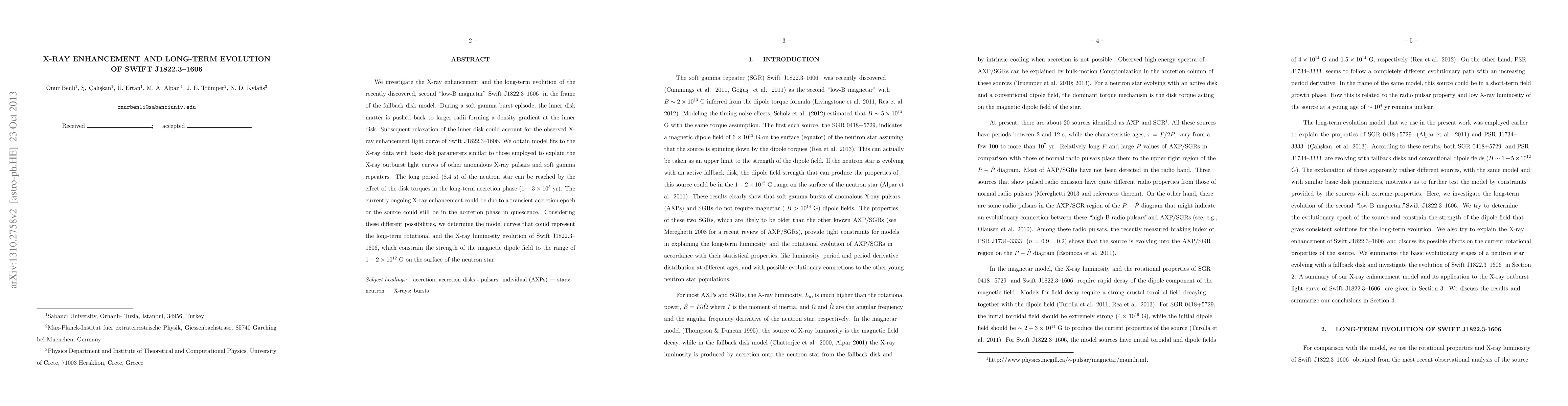 We investigate the X-ray enhancement and the long-term evolution of the recently discovered, second "low-B magnetar" Swift J1822.3-1606 in the frame of the fallback disk model. During a soft gamma burst episode, the inner disk matter is pushed back to larger radii forming a density gradient at the inner disk. Subsequent relaxation of the inner disk could account for the observed X-ray enhancement light curve of Swift J1822.3-1606. We obtain model fits to the X-ray data with basic disk parameters similar to those employed to explain the X-ray outburst light curves of other AXPs and SGRs. The long period (8.4 s) of the neutron star can be reached by the effect of the disk torques in the long-term accretion phase (1-3 x 10^5 yrs). The currently ongoing X-ray enhancement could be due to a transient accretion epoch, or the source could still be in the accretion phase in quiescence. Considering these different possibilities, we determine the model curves that could represent the long-term rotational and the X-ray luminosity evolution of Swift J1822.3-1606, which constrain the strength of the magnetic dipole field to the range of 1-2 x 10^12 G on the surface of the neutron star.
