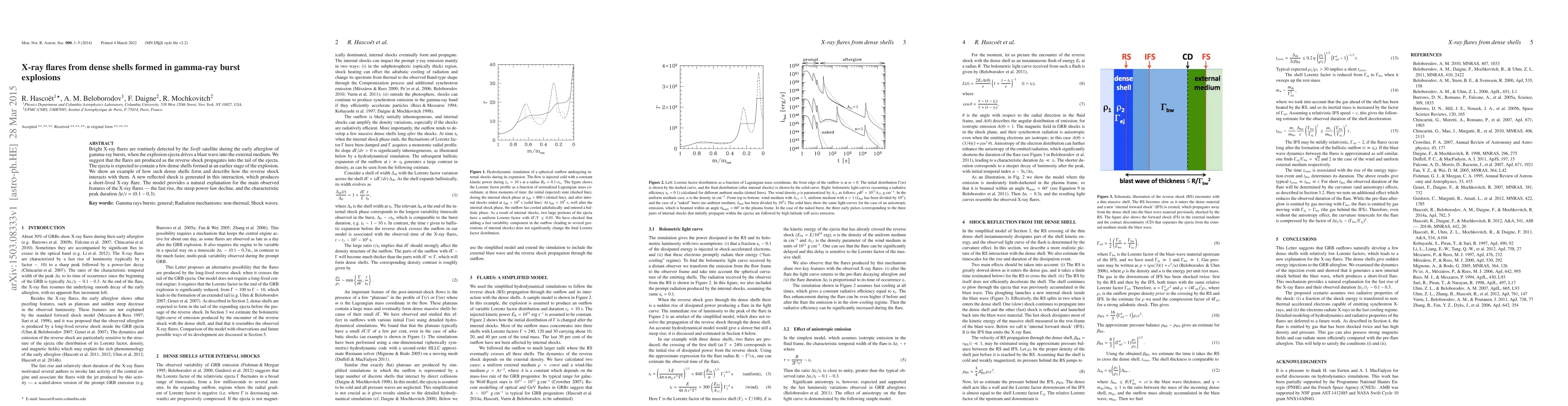 Researchers propose that X-ray flares in gamma-ray burst explosions are caused by interactions between a reverse shock and dense shells formed within the ejecta, providing a natural explanation for observed features of these flares.
