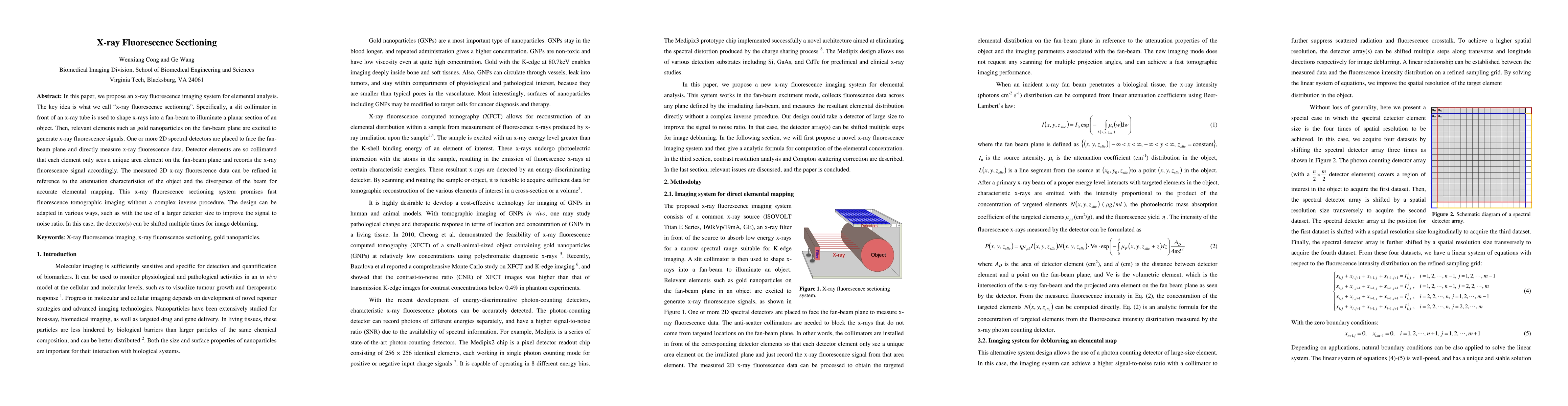 The development of a novel x-ray fluorescence sectioning concept using advanced photon-counting detector technology, which enables fast fluorescence tomographic imaging for accurate reconstruction of nanoparticle distributions.