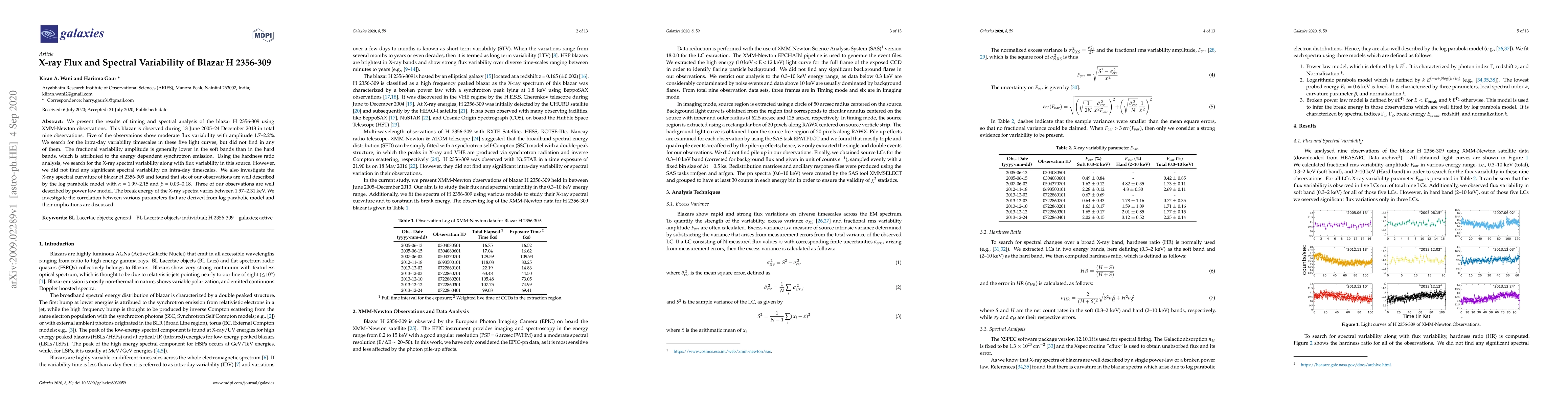 This study analyzes XMM-Newton observations of blazar H 2356-309, revealing moderate flux variability but no intra-day variability. Spectral variability is also absent, and the X-ray spectra are best described by log parabolic models, with some observations fitting power law models.