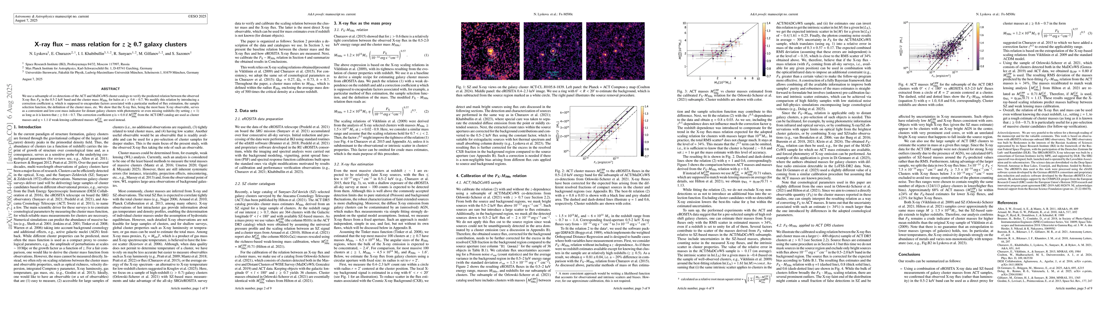We use a subsample of co-detections of the ACT and MaDCoWS cluster catalogs to verify the predicted relation between the observed X-ray flux $F_X$ in the 0.5-2~keV band and the cluster mass $M_{\rm 500c}$ for halos at $z>0.6-0.7$. We modify this relation by introducing a correction coefficient $\eta$, which is supposed to encapsulate factors associated with a particular method of flux estimation, the sample selection function, the definition of the cluster mass, etc. We show that the X-ray flux, being the most basic X-ray observable, serves as a convenient and low-cost mass indicator for distant galaxy clusters with photometric or even missing redshifts (by setting $z=1$) as long as it is known that $z\gtrsim 0.6-0.7$. The correction coefficient $\eta$ is $\approx 0.8$ if $M^{\rm UPP}_{\rm 500c}$ from the ACT-DR5 catalog are used as cluster masses and $\eta\approx 1.1$ if weak-lensing-calibrated masses $M^{\rm Cal}_{\rm 500c}$ are used instead.