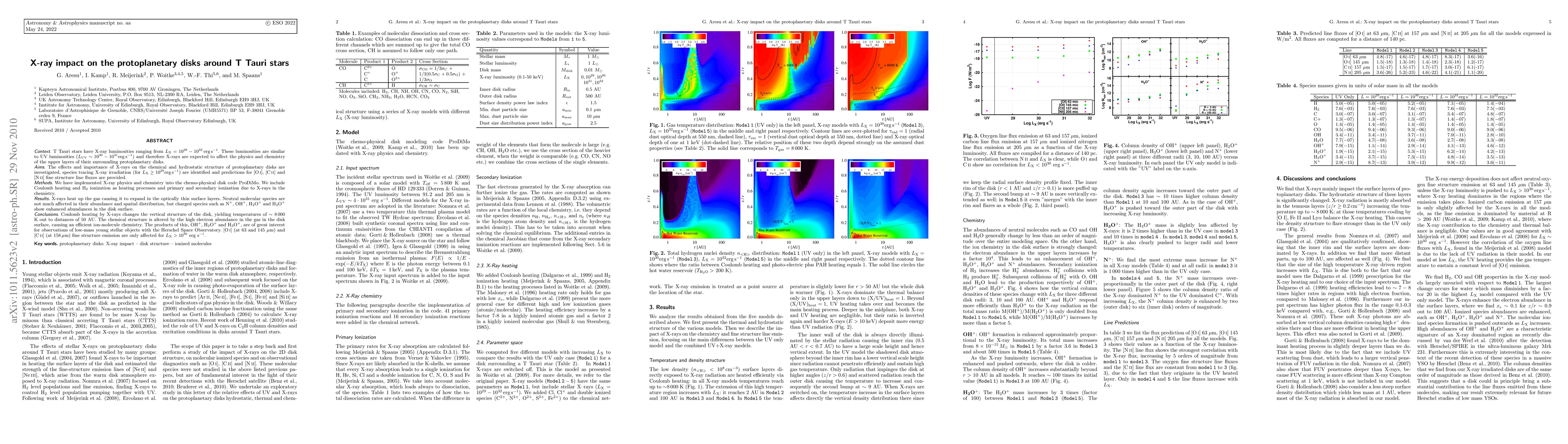 This paper investigates the impact of X-rays from T Tauri stars on the chemistry and structure of their protoplanetary disks, finding that X-ray irradiation enhances the abundance of charged species like N+, OH+, H2O+, and H3O+ in the disk's surface layers. The study predicts significant effects on [OI], [CII], and [NII] fine structure lines for high X-ray luminosities.