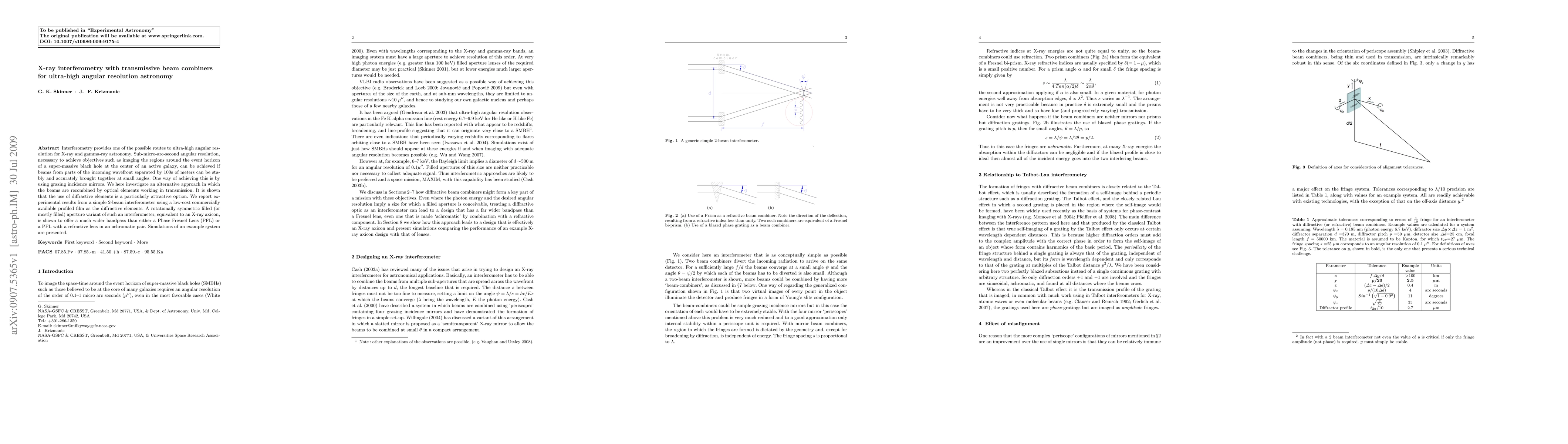 This paper explores the use of transmissive beam combiners, specifically diffractive elements, for achieving ultra-high angular resolution in X-ray interferometry. Experimental results demonstrate the feasibility of a simple 2-beam interferometer using profiled film, and simulations show that a rotationally symmetric filled aperture variant offers a wider bandpass than traditional phase Fresnel lenses.