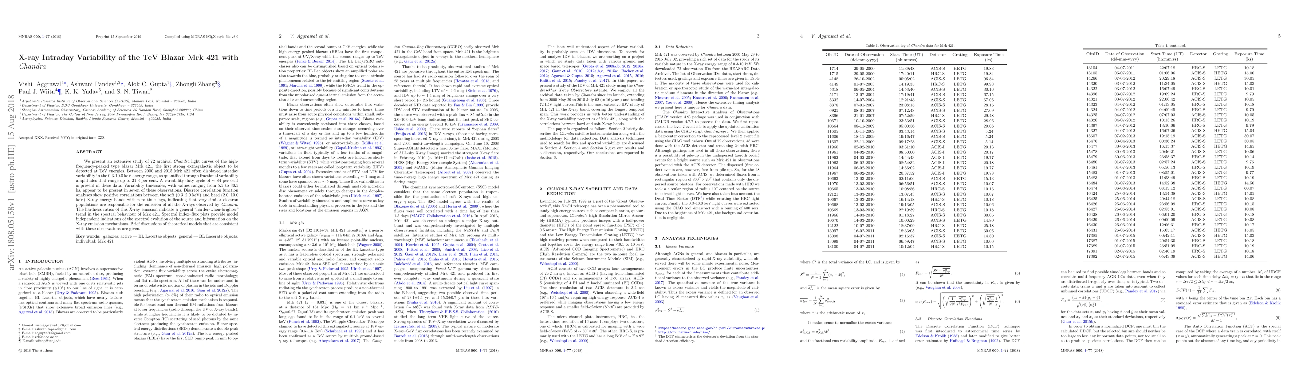 This study analyzed 72 years of Chandra light curves of blazar Mrk 421, finding it exhibited significant intraday variability and correlations between soft and hard X-ray energy bands, suggesting a consistent electron population responsible for its emission.