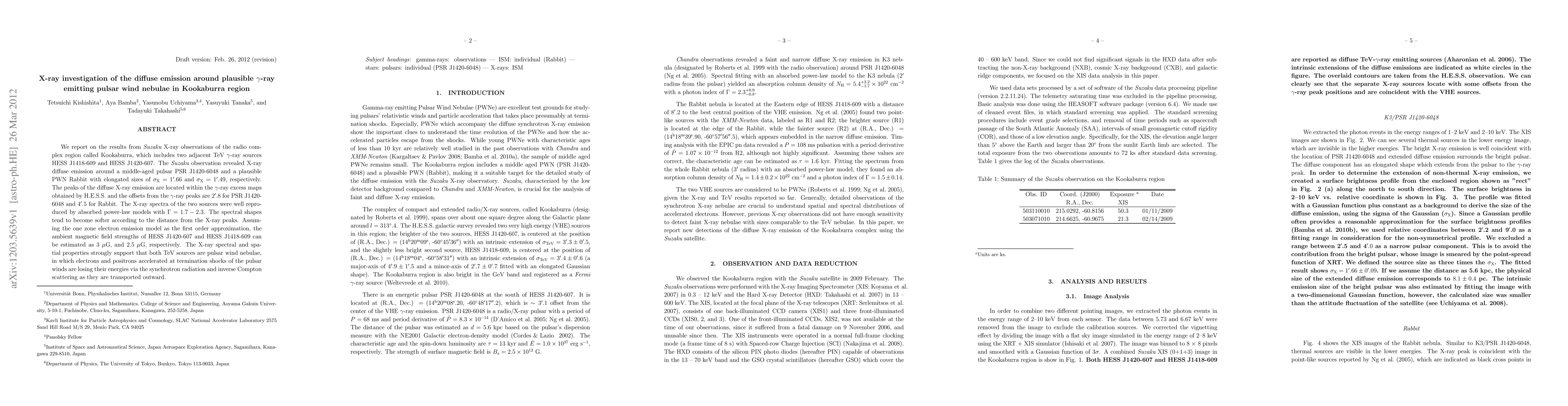 The Suzaku X-ray observations of the Kookaburra region reveal diffuse X-ray emissions around pulsars PSR J1420-6048 and Rabbit, supporting their identification as pulsar wind nebulae. The X-ray spectra suggest synchrotron radiation and inverse Compton scattering processes, with magnetic field strengths estimated at 3 μG and 2.5 μG, respectively.