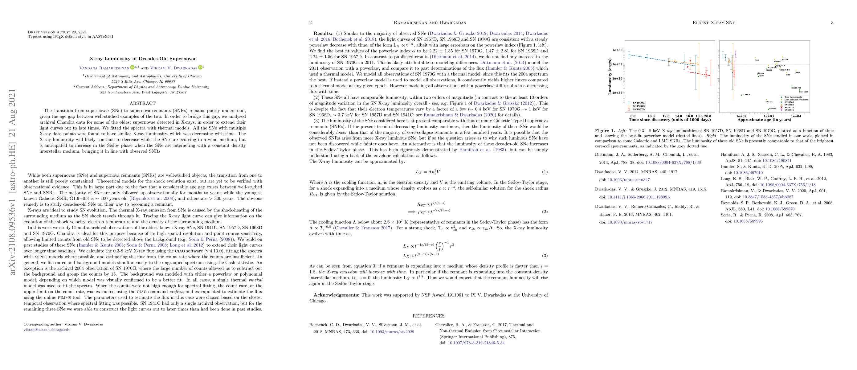 This study analyzed archival Chandra data to extend the X-ray light curves of decades-old supernovae, revealing a consistent decrease in X-ray luminosity over time. The findings suggest that the luminosity will likely rise again during the Sedov phase when the supernovae interact with a denser interstellar medium.