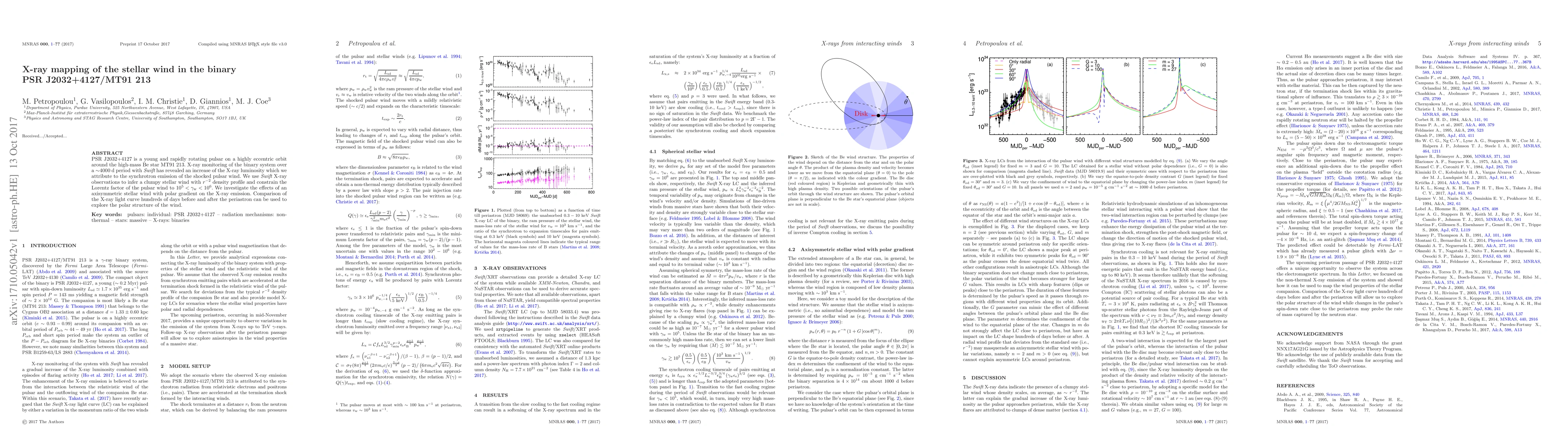 This study uses Swift X-ray observations to map the stellar wind in the binary system PSR J2032+4127/MT91 213, revealing a clumpy wind with a $r^{-2}$ density profile and constraining the pulsar wind's Lorentz factor to $10^5<\gamma_w<10^6$. The analysis explores the impact of the stellar wind's axisymmetric polar gradient on X-ray emission, utilizing light curve comparisons to infer wind structure.