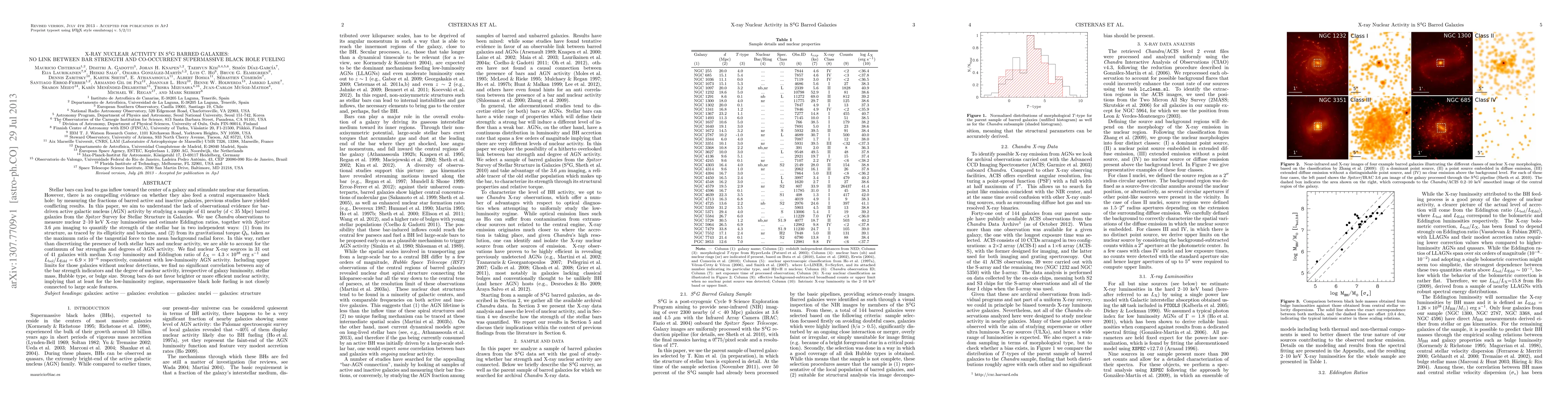 This study investigates the relationship between stellar bar strength and nuclear activity in 41 barred galaxies using Chandra X-ray and Spitzer imaging data. It finds no significant correlation between bar strength and low-luminosity AGN activity, suggesting supermassive black hole fueling is not closely linked to bar features.