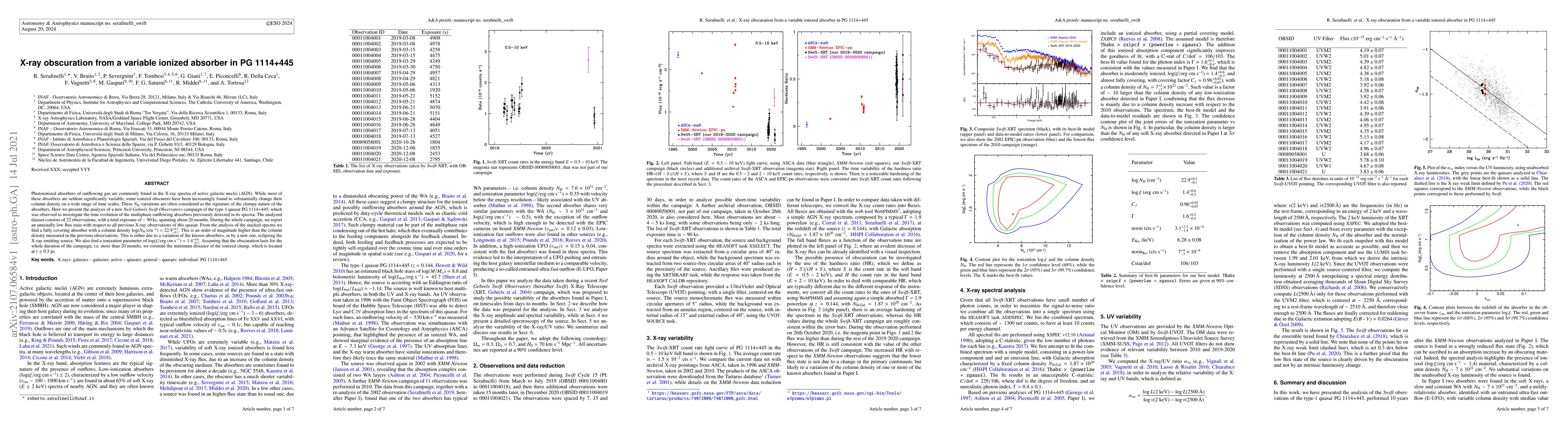 The research presents an analysis of a Swift X-ray Telescope (XRT) campaign targeting the type-1 quasar PG 1114+445, aiming to investigate the variability of previously detected multiphase outflowing absorbers over a period of approximately 20 months.