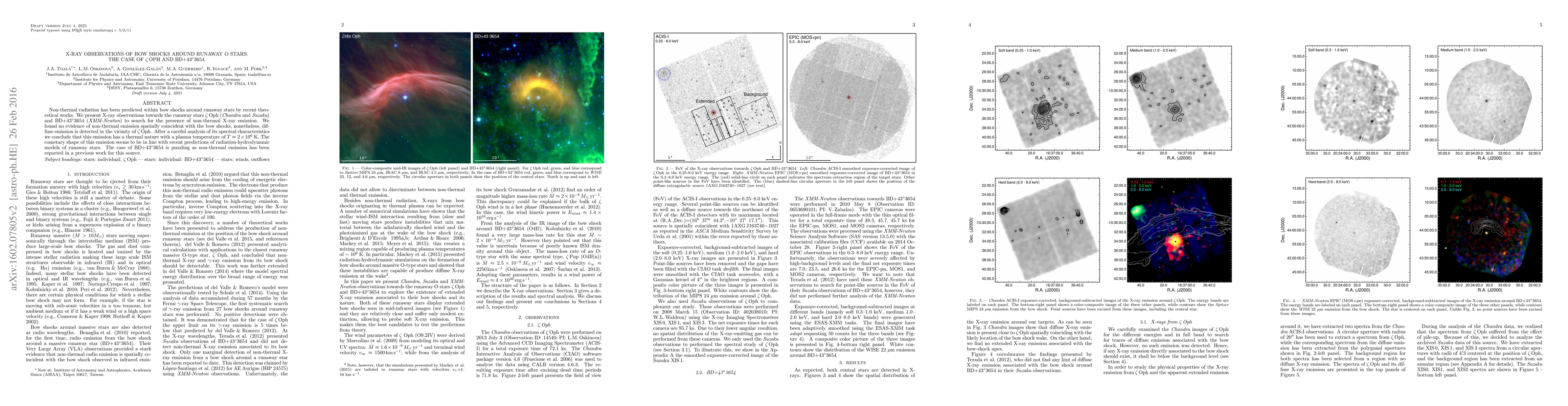 X-ray observations of bow shocks around runaway stars $eta$ Oph and BD+43$^ extcirc$3654 found no non-thermal emission, but detected diffuse thermal X-ray emission near $eta$ Oph.