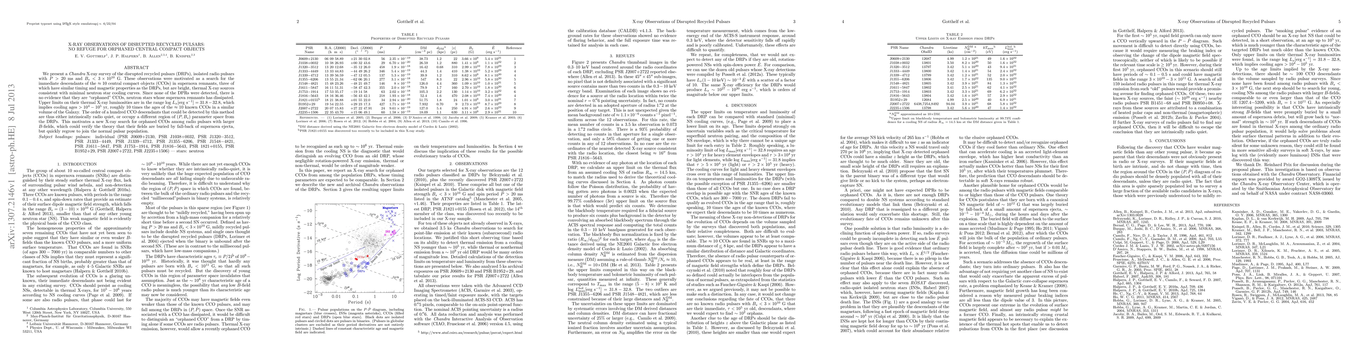 We present a Chandra X-ray survey of the disrupted recycled pulsars (DRPs), isolated radio pulsars with P > 20 ms and B_s < 3E10 G. These observations were motivated as a search for the immediate descendants of the approx. 10 central compact objects (CCOs) in supernova remnants, three of which have similar timing and magnetic properties as the DRPs, but are bright, thermal X-ray sources consistent with minimal neutron star cooling curves. Since none of the DPRs were detected, there is no evidence that they are "orphaned" CCOs, neutron stars whose supernova remnants has dissipated. Upper limits on their thermal X-ray luminosities are in the range log Lx[erg/s] = 31.8-32.8, which implies cooling ages > 1E4 - 1E5 yr, roughly 10 times the ages of the approximately 10 known CCOs in a similar volume of the Galaxy. The order of a hundred CCO descendants that could be detected by this method are thus either intrinsically radio quiet, or occupy a different region of (P,B_s) parameter space from the DRPs. This motivates a new X-ray search for orphaned CCOs among radio pulsars with larger B-fields, which could verify the theory that their fields are buried by fall-back of supernova ejecta, but quickly regrow to join the normal pulsar population.