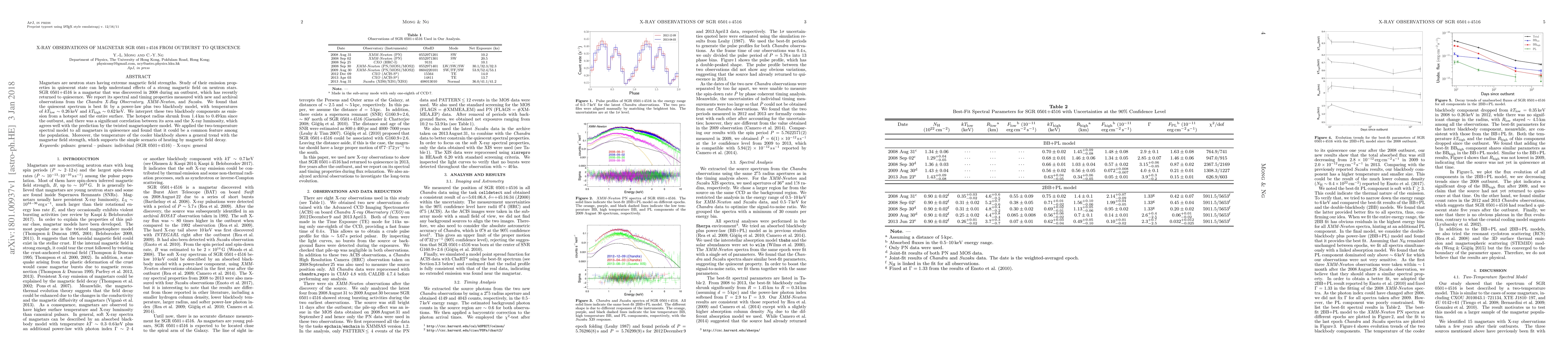 Magnetars are neutron stars having extreme magnetic field strengths. Study of their emission properties in quiescent state can help understand effects of a strong magnetic field on neutron stars. SGR 0501+4516 is a magnetar that was discovered in 2008 during an outburst, which has recently returned to quiescence. We report its spectral and timing properties measured with new and archival observations from the Chandra X-Ray Observatory, XMM-Newton, and Suzaku. We found that the quiescent spectrum is best fit by a power-law plus two blackbody model, with temperatures of kT_low~0.26 keV and kT_high~0.62 keV. We interpret these two blackbody components as emission from a hotspot and the entire surface. The hotspot radius shrunk from 1.4 km to 0.49 km since the outburst, and there was a significant correlation between its area and the X-ray luminosity, which agrees well with the prediction by the twisted magnetosphere model. We applied the two temperature spectral model to all magnetars in quiescence and found that it could be a common feature among the population. Moreover, the temperature of the cooler blackbody shows a general trend with the magnetar field strength, which supports the simple scenario of heating by magnetic field decay.