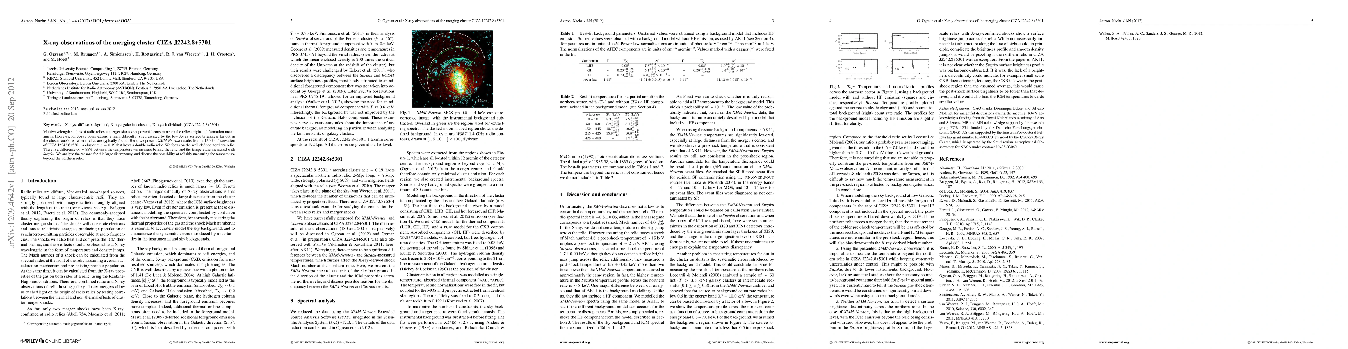 Multiwavelength studies of radio relics at merger shocks set powerful constraints on the relics origin and formation mechanism. However, for X-ray observations, a main difficulty is represented by the low X-ray surface brightness far out in the cluster outskirts, where relics are typically found. Here, we present XMM-Newton results from a 130-ks observation of CIZA J2242.8+5301, a cluster at z=0.19 that hosts a double radio relic. We focus on the well-defined northern relic. There is a difference of ~55% between the temperature we measure behind the relic, and the temperature measured with Suzaku. We analyse the reasons for this large discrepancy, and discuss the possibility of reliably measuring the temperature beyond the northern relic.