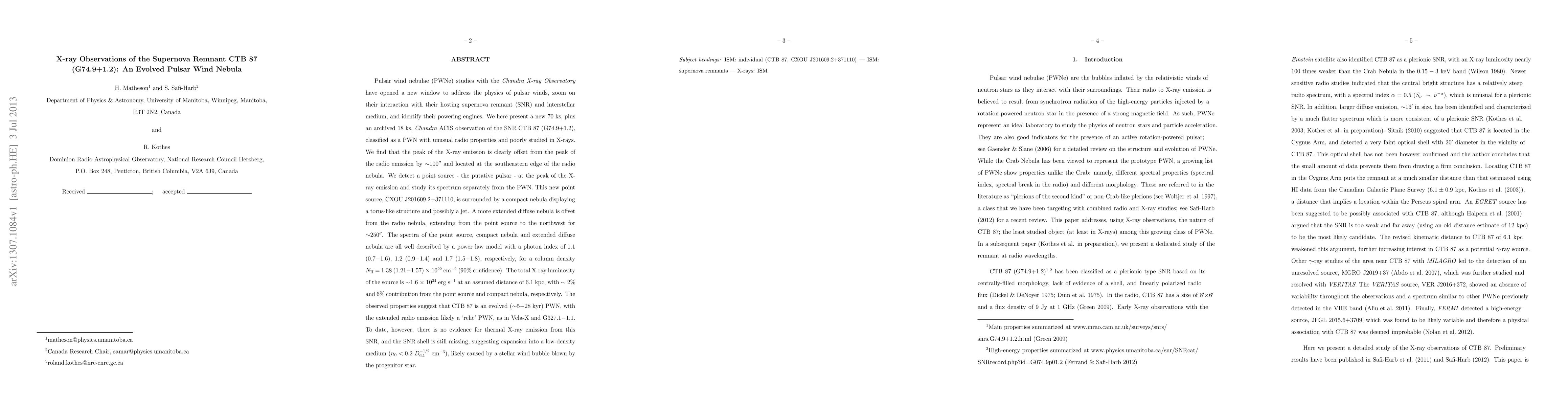 The research used a combination of Chandra X-ray observations and radio data from the CGPS to study the properties of CTB 87.