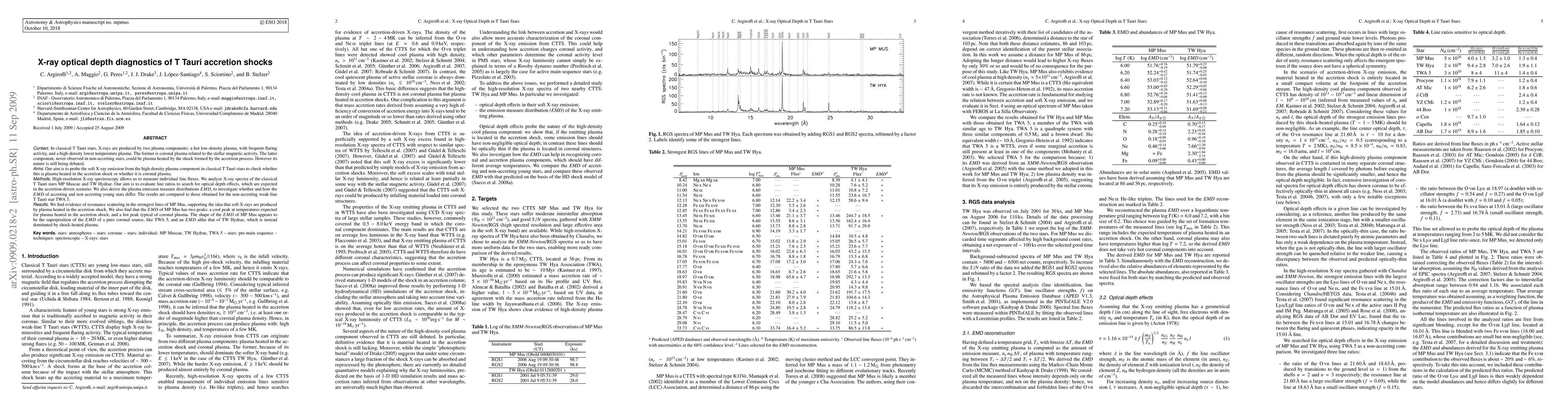 This paper investigates the X-ray emission from classical T Tauri stars to determine if soft X-rays originate from plasma heated in accretion shocks or coronal plasma. The study finds resonance scattering evidence in MP Muscae supporting accretion shock heating and reveals distinct emission measure distributions in MP Mus, indicating a mix of coronal and shock-heated plasma.