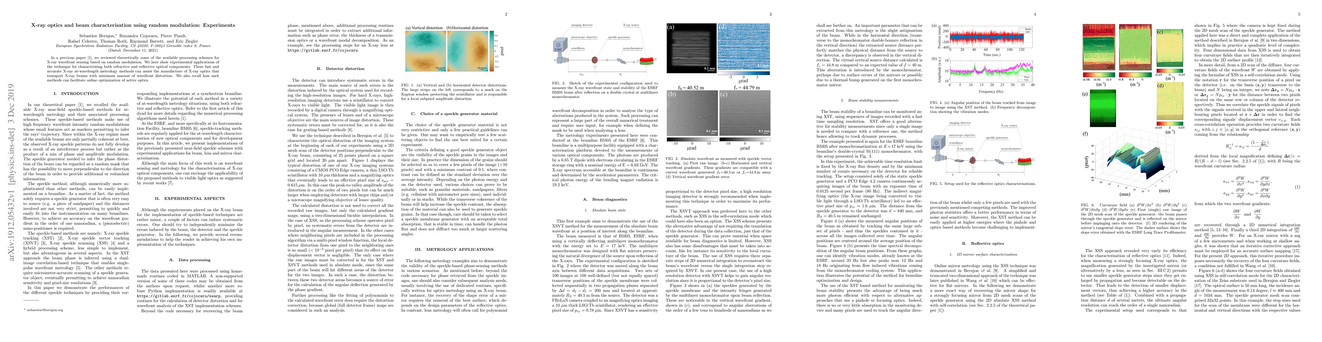 In a previous paper, we reviewed theoretically some of the available processing schemes for X-ray wavefront sensing based on random modulation. We here show experimental applications of the technique for characterising both refractive and reflective optical components. These fast and accurate X-ray at-wavelength metrology methods can assist the manufacture of X-ray optics that transport X-ray beams with minimum amount of wavefront distortion. We also recall how such methods can facilitate online optimization of active optics.