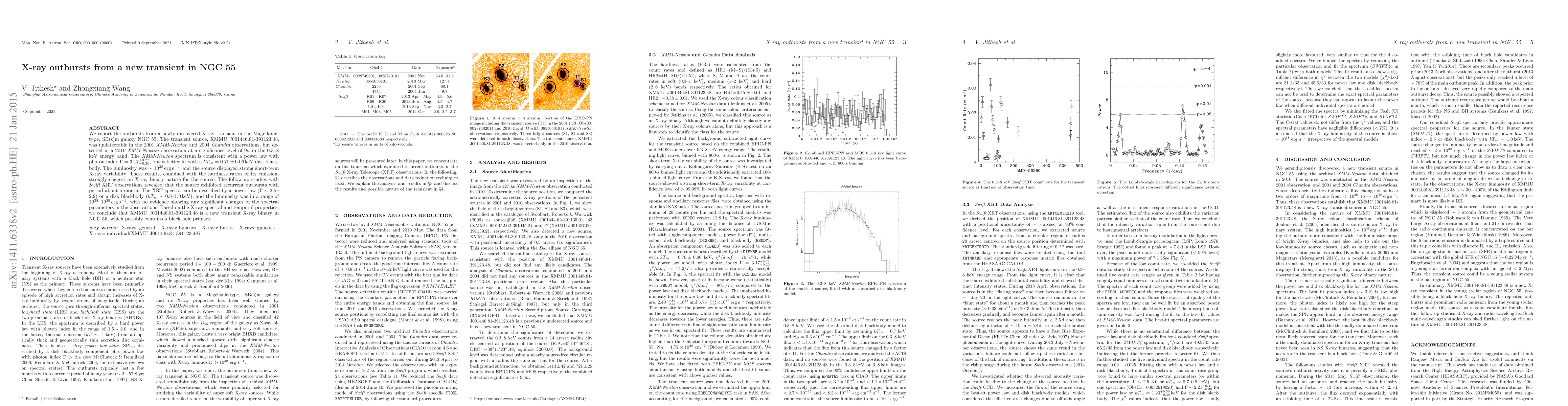 The paper reports the discovery of a new X-ray transient in NGC 55, detected in 2010 after being undetectable in earlier observations. The source shows recurrent outbursts, suggesting it is a transient X-ray binary likely containing a black hole.
