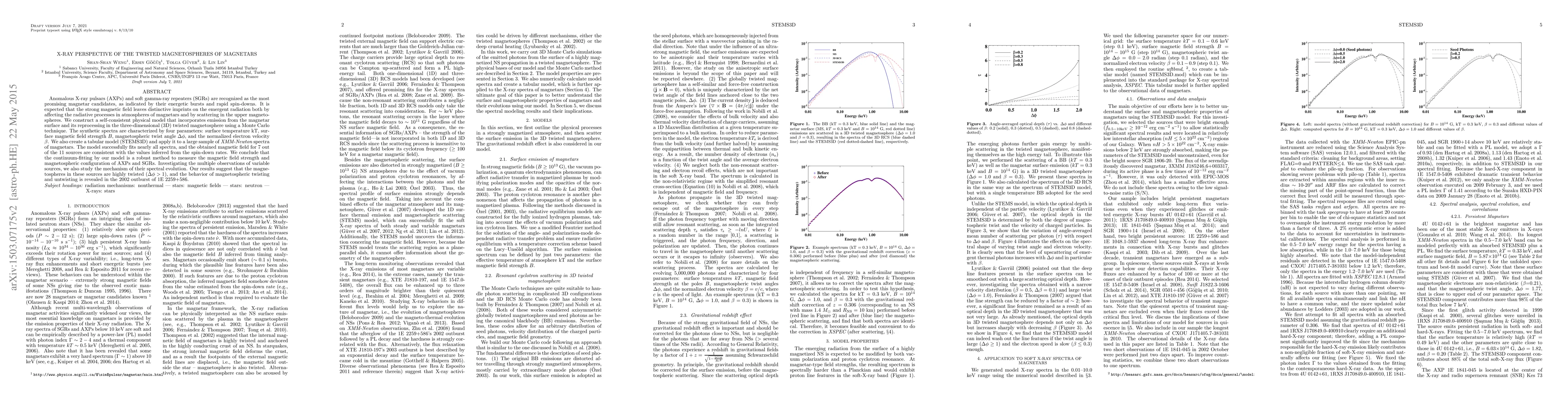 This paper develops a self-consistent model to analyze the X-ray emissions from magnetars, focusing on their twisted magnetospheres. The model fits XMM-Newton spectra, revealing strong magnetic fields and highly twisted magnetospheres, and provides a robust method for measuring these properties.