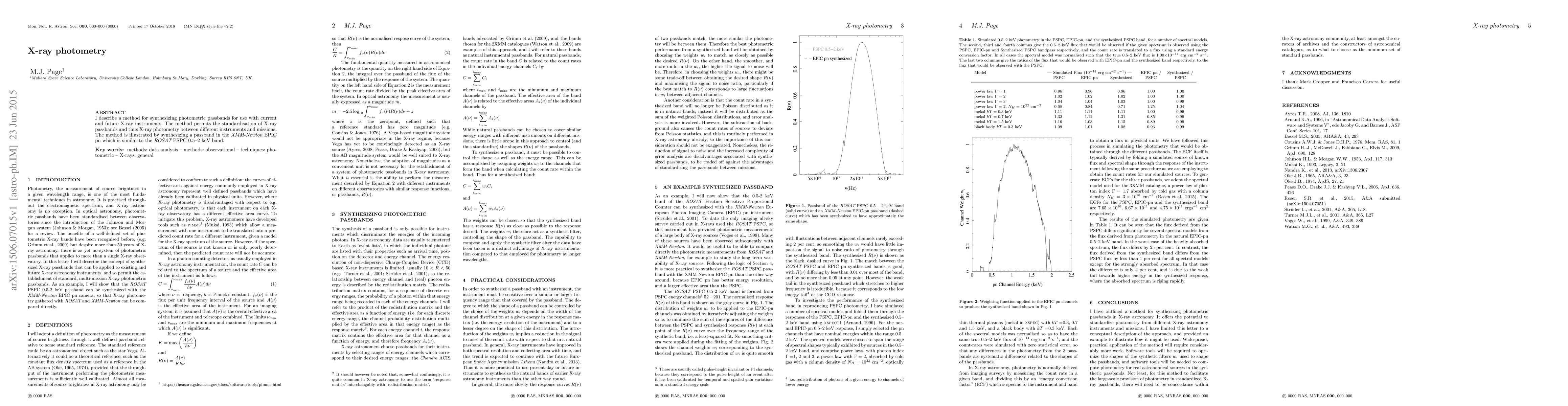 I describe a method for synthesizing photometric passbands for use with current and future X-ray instruments. The method permits the standardisation of X-ray passbands and thus X-ray photometry between different instruments and missions. The method is illustrated by synthesizing a passband in the XMM-Newton EPIC pn which is similar to the ROSAT PSPC 0.5-2 keV band.