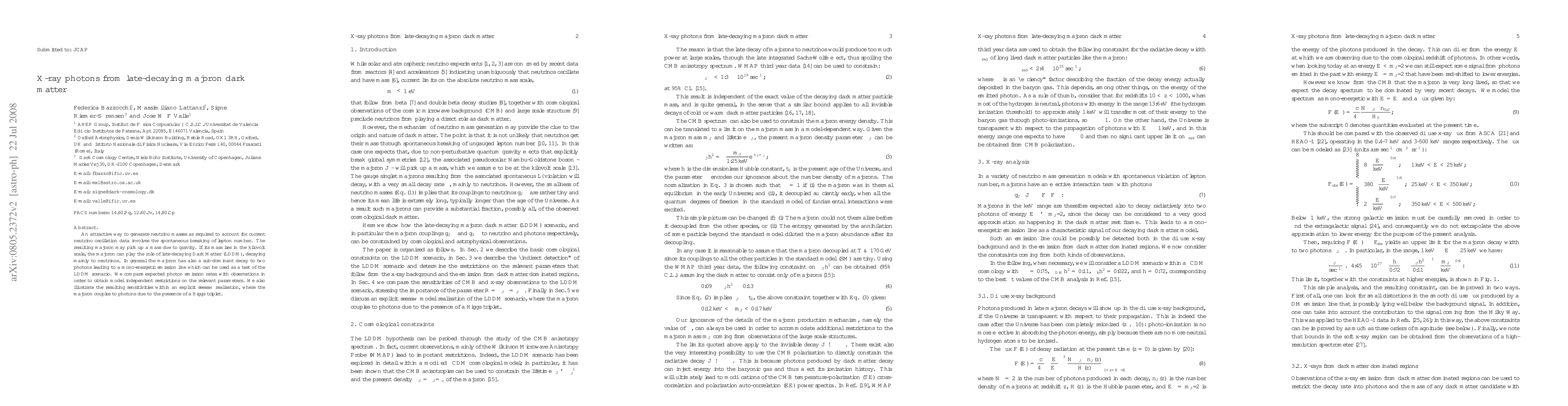 This paper explores the potential of majorons, resulting from spontaneous lepton number breaking, as late-decaying dark matter, which decays primarily into neutrinos and sub-dominantly into two photons. It compares predicted photon emission rates against observations to derive model-independent constraints on majoron parameters and examines these within a specific seesaw model involving a Higgs triplet.