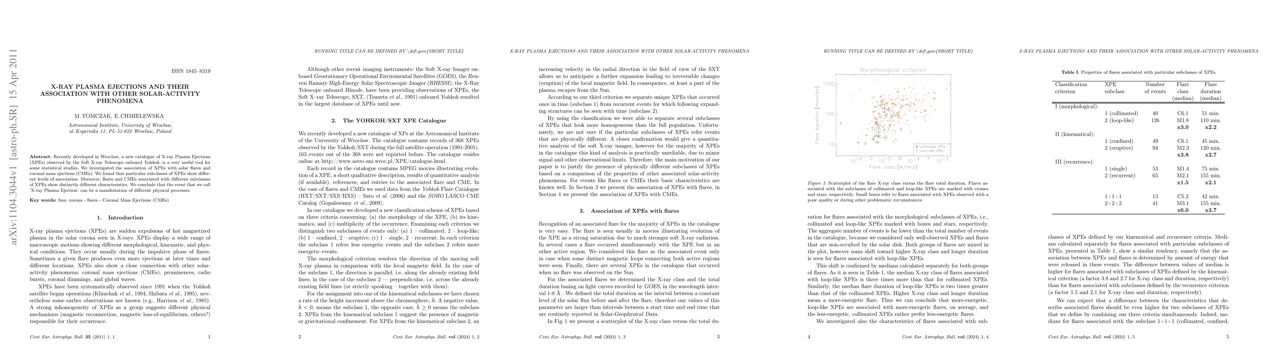 Researchers found that X-ray Plasma Ejections (XPEs) have different levels of association with solar flares and coronal mass ejections, suggesting multiple physical processes may be involved.
