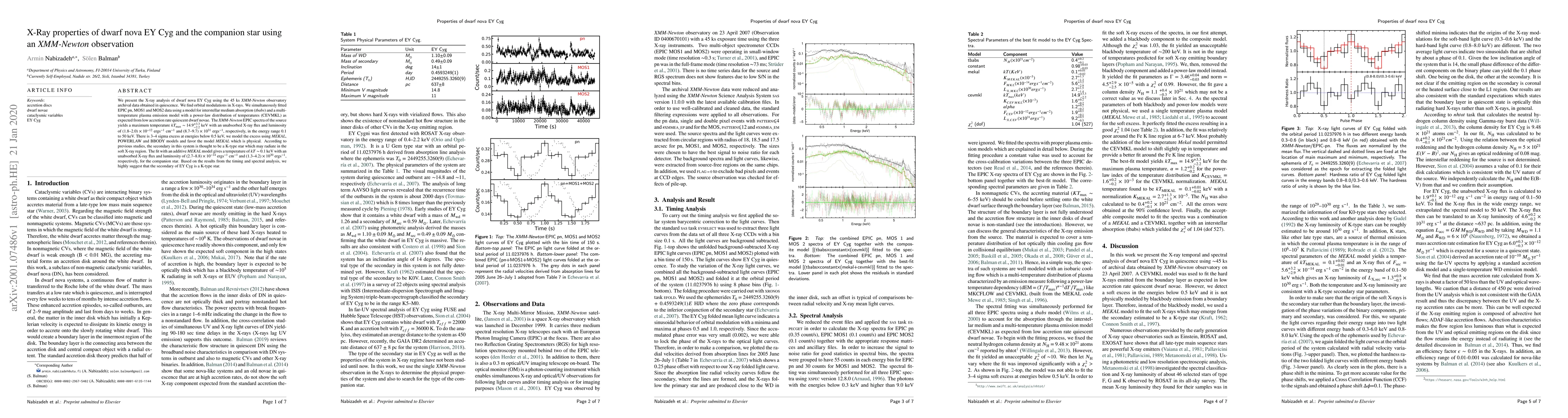 Researchers analyzed XMM-Newton data for EY Cyg, a dwarf nova, to find orbital modulations in X-rays and determine its companion star is likely a K-type star.