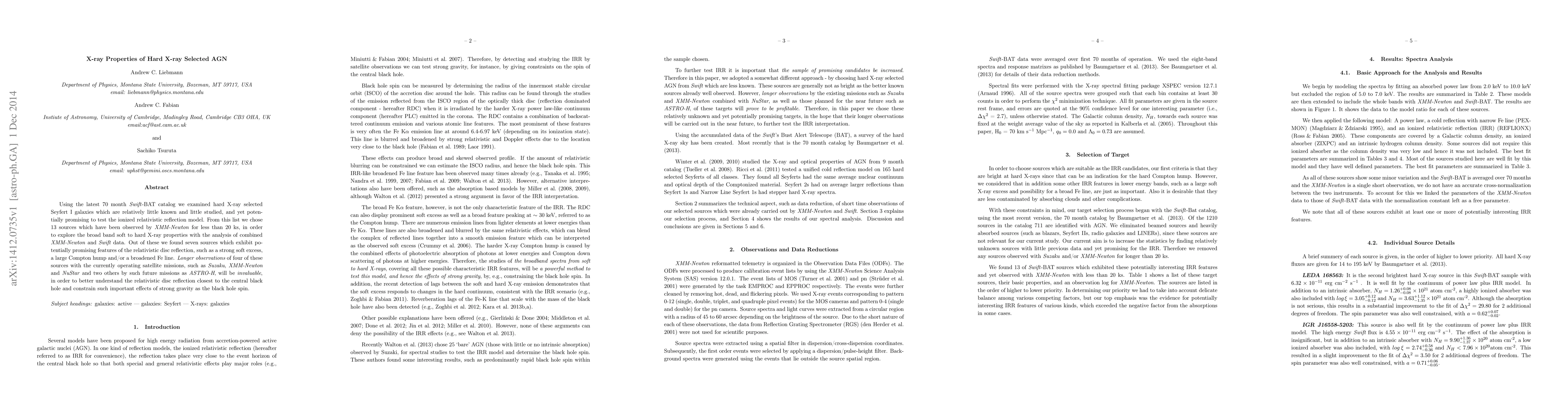 This study examines hard X-ray selected AGN for signs of relativistic disc reflection, finding 7 promising sources that could help constrain black hole spin effects. Further observations with future satellite missions will be crucial to confirm these findings.