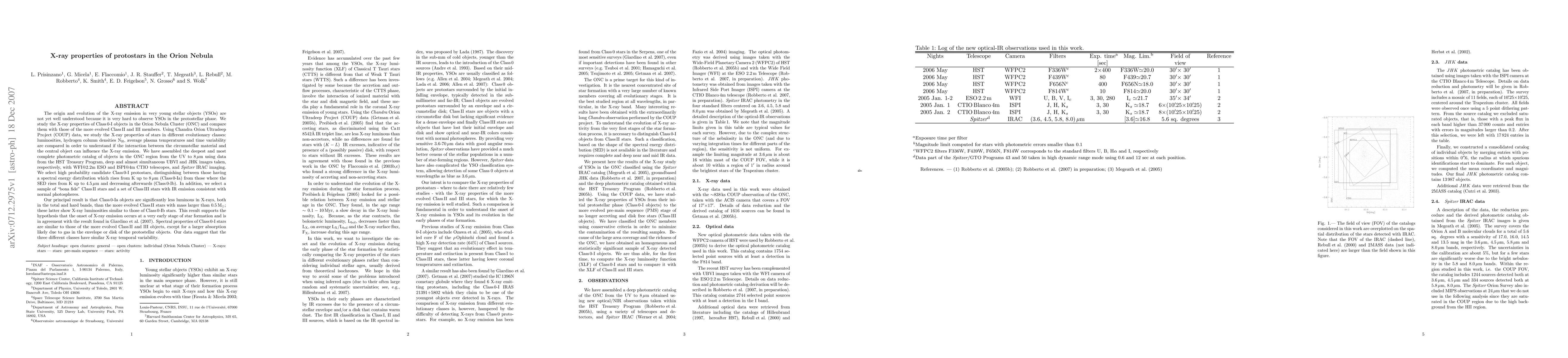 The study investigates the X-ray properties of Class 0-I protostars in the Orion Nebula Cluster (ONC) using Chandra Orion Ultradeep Project (COUP) data. It compares these properties with those of more evolved Class II and III members, analyzing luminosities, NH, temperatures, and time variability.