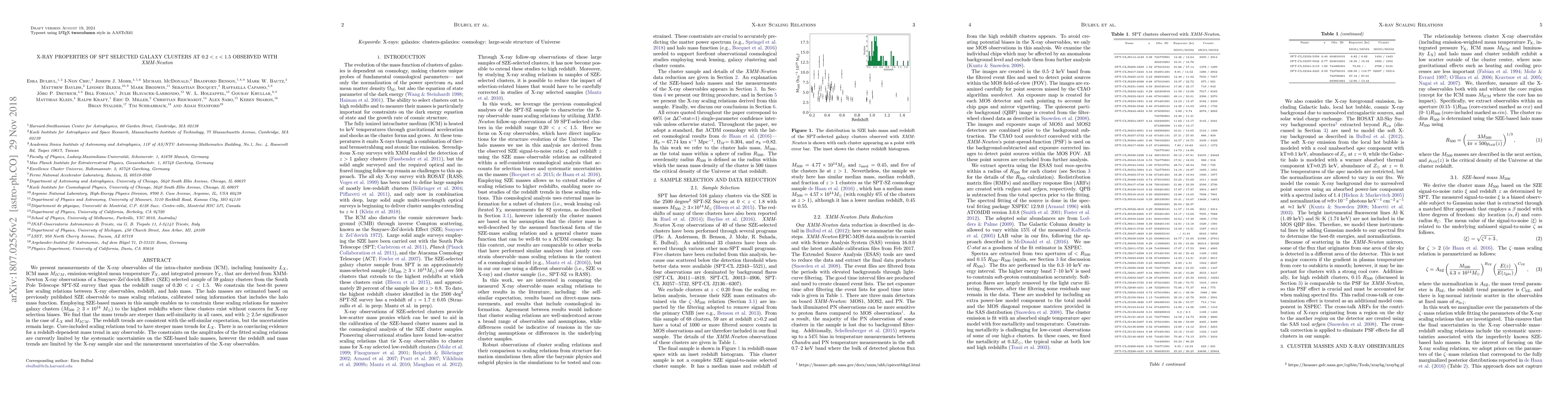 Researchers studied X-ray properties of galaxy clusters at 0.2<z<1.5 using XMM-Newton data, finding that mass trends for luminosity and ICM mass are steeper than self-similarity and consistent with expectation for temperature.