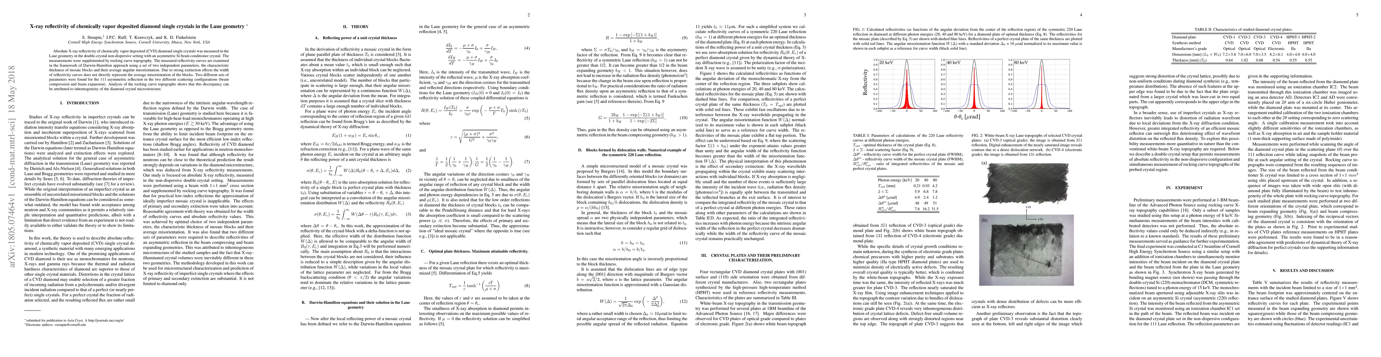 Absolute X-ray reflectivity of chemically vapor deposited (CVD) diamond single crystals was measured in the Laue geometry in the double-crystal non-dispersive setting with an asymmetric Si beam conditioner crystal. The measurements were supplemented by rocking curve topography. The measured reflectivity curves are examined in the framework of Darwin-Hamilton approach using a set of two independent parameters, the characteristic thickness of mosaic blocks and their average angular misorientation. Due to strong extinction effects the width of reflectivity curves does not directly represent the average misorientation of the blocks. Two different sets of parameters were found for the 111 asymmetric reflection in the two different scattering configurations (beam compression and beam expansion). Analysis of the rocking curve topographs shows that this discrepancy can be attributed to inhomogeneity of the diamond crystal microstructure.