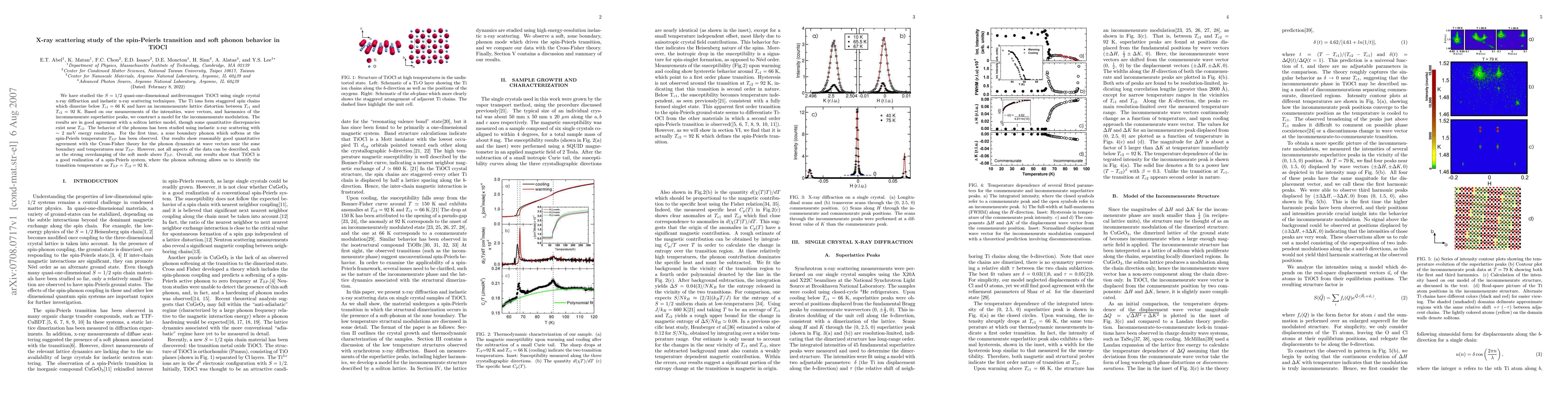 This study uses x-ray scattering to investigate the spin-Peierls transition in TiOCl, revealing staggered spin chain dimerization and an incommensurate lattice distortion. Inelastic x-ray scattering identifies a softening zone boundary phonon at the transition temperature, supporting the Cross-Fisher theory but with some discrepancies.