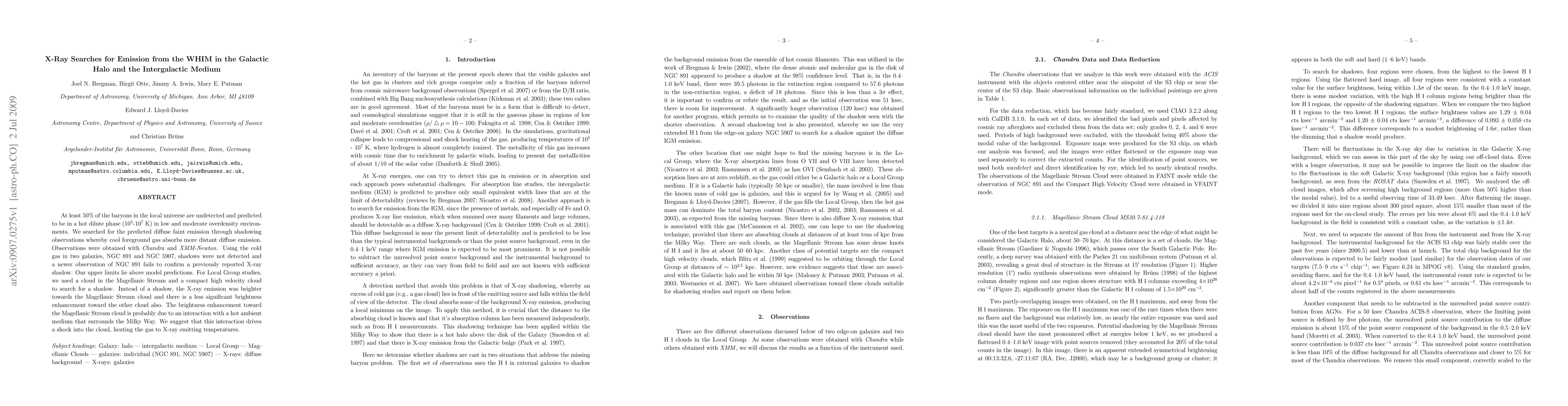 At least 50% of the baryons in the local universe are undetected and predicted to be in a hot dilute phase (1E5-1E7 K) in low and moderate overdensity environments. We searched for the predicted diffuse faint emission through shadowing observations whereby cool foreground gas absorbs more distant diffuse emission. Observations were obtained with Chandra and XMM-Newton. Using the cold gas in two galaxies, NGC 891 and NGC 5907, shadows were not detected and a newer observation of NGC 891 fails to confirm a previously reported X-ray shadow. Our upper limits lie above model predictions. For Local Group studies, we used a cloud in the Magellanic Stream and a compact high velocity cloud to search for a shadow. Instead of a shadow, the X-ray emission was brighter towards the Magellanic Stream cloud and there is a less significant brightness enhancement toward the other cloud also. The brightness enhancement toward the Magellanic Stream cloud is probably due to an interaction with a hot ambient medium that surrounds the Milky Way. We suggest that this interaction drives a shock into the cloud, heating the gas to X-ray emitting temperatures.