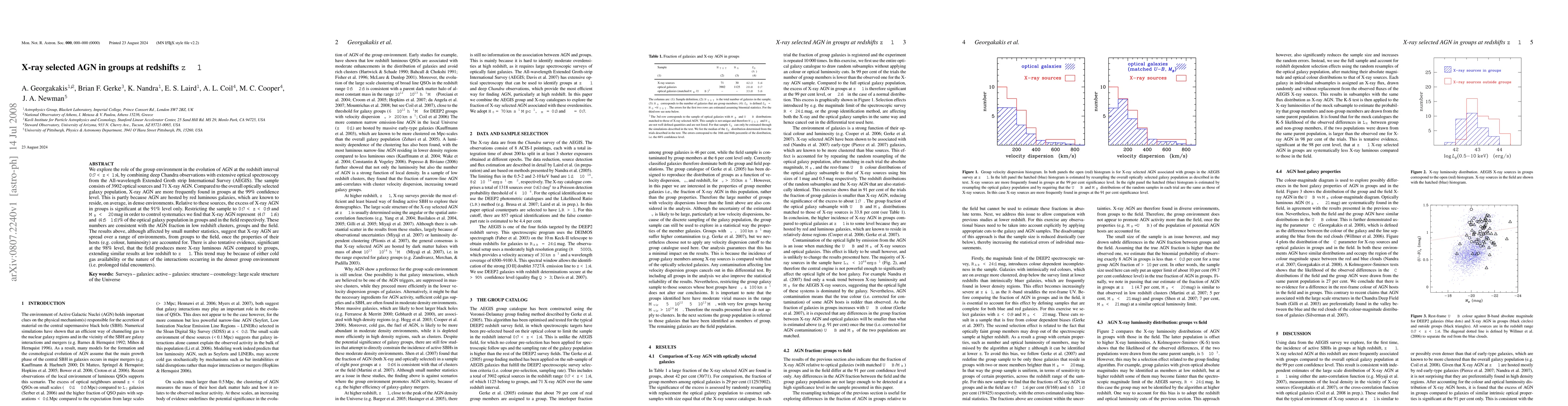 This study investigates the distribution of X-ray selected AGN in groups at redshifts z~1 using deep Chandra observations and optical spectroscopy. It finds that X-ray AGN are more prevalent in groups than in the field, suggesting a link to the environments of their host galaxies. There is also tentative evidence that the field produces more luminous X-ray AGN than groups, potentially due to differences in gas availability or interaction dynamics.
