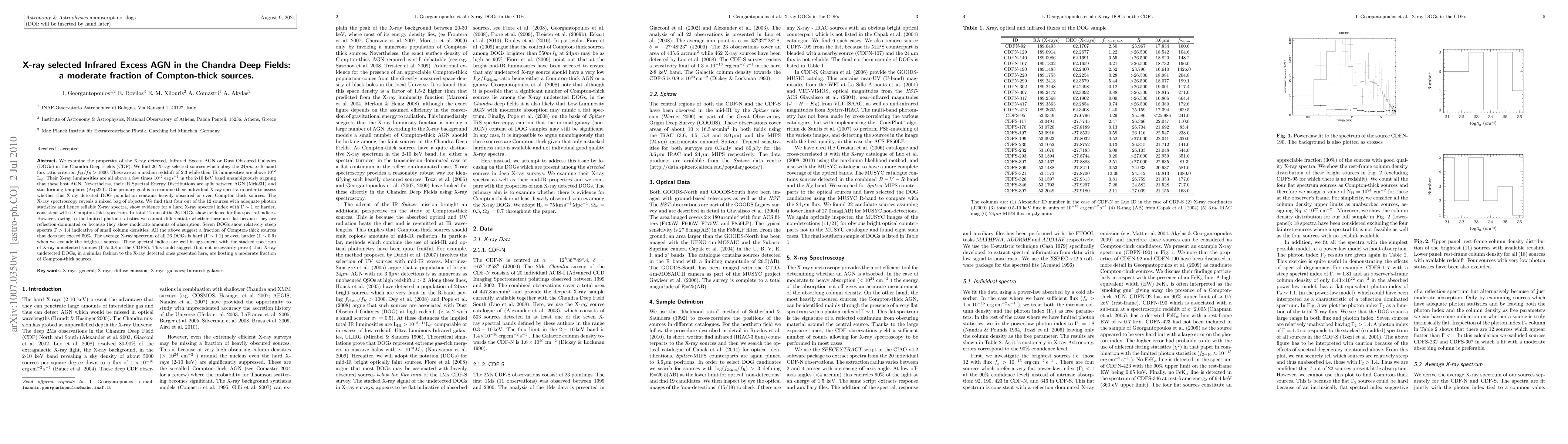 This paper investigates X-ray detected Infrared Excess AGN in the Chandra Deep Fields, identifying 26 Dust Obscured Galaxies (DOGs) with significant IR luminosities. The study finds that while most DOGs exhibit hard X-ray spectra, only a small fraction (less than 5%) show evidence of Compton-thick AGN.