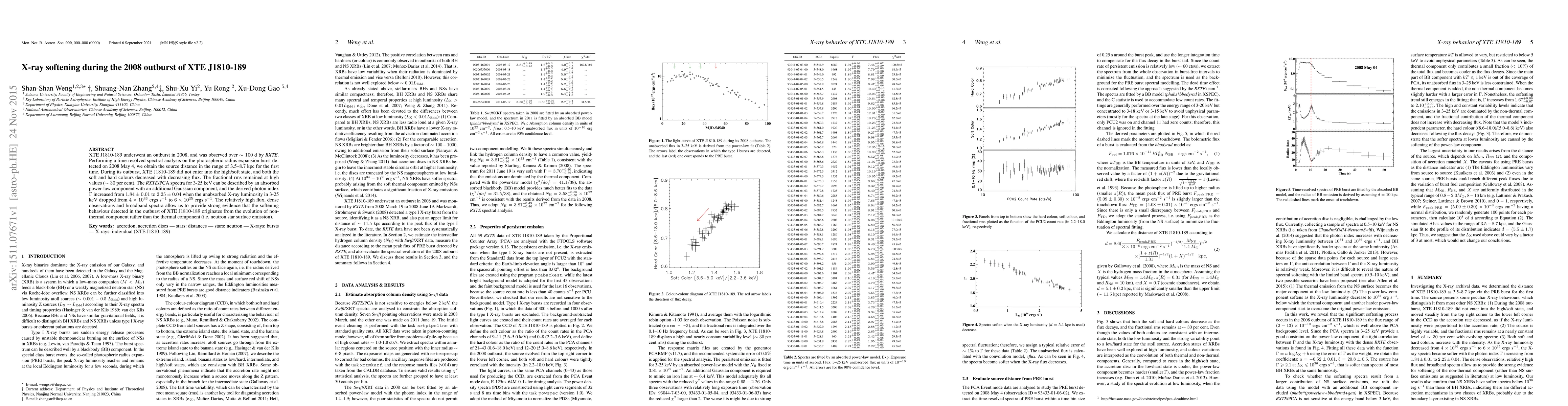 The 2008 outburst of XTE J1810-189 showed X-ray softening without transitioning to the high/soft state, with the photon index increasing as luminosity decreased. The spectral analysis suggests this softening is due to the evolution of a non-thermal component rather than thermal emission.