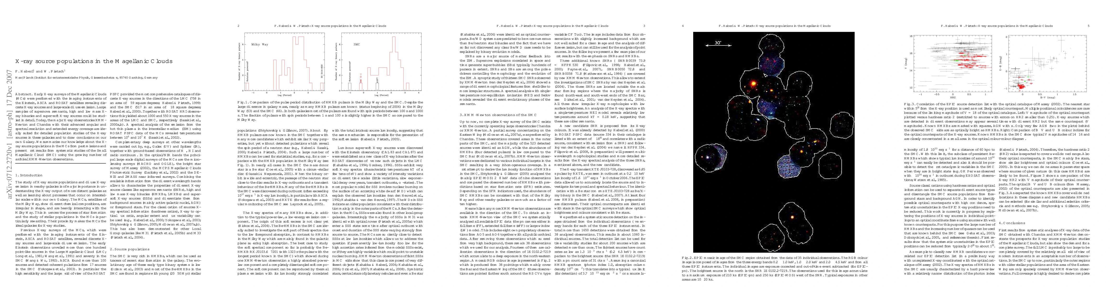 This paper reviews the X-ray source populations in the Magellanic Clouds, detailing findings from early X-ray surveys and presenting new results from XMM-Newton observations of the Small Magellanic Cloud, aiming to enhance our understanding of these sources and their relevance to our own Galaxy.