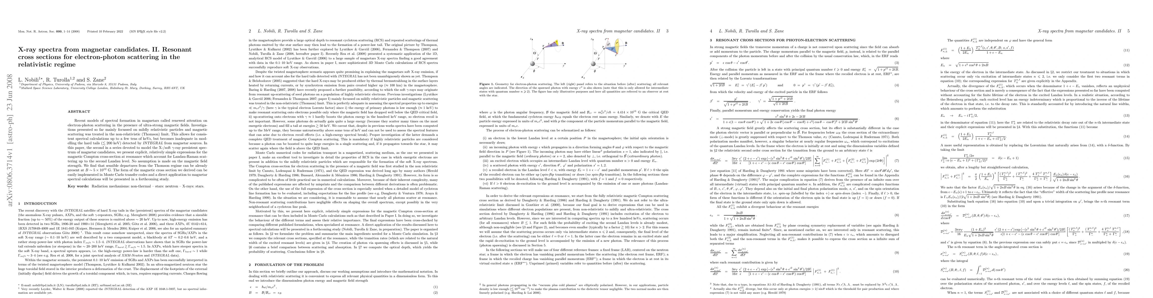 Recent models of spectral formation in magnetars called renewed attention on electron-photon scattering in the presence of ultra-strong magnetic fields. Investigations presented so far mainly focussed on mildly relativistic particles and magnetic scattering was treated in the non-relativistic (Thomson) limit. This allows for consistent spectral calculations up to a few tens of keVs, but becomes inadequate in modelling the hard tails (<200 keV) detected by INTEGRAL from magnetar sources. In this paper, the second in a series devoted to model the X-/soft gamma-ray persistent spectrum of magnetar candidates, we present explicit, relatively simple expressions for the magnetic Compton cross-section at resonance which account for Landau-Raman scattering up to the second Landau level. No assumption is made on the magnetic field strength. We find that sensible departures from the Thomson regime can bealready present at B ~5E12 G. The form of the magnetic cross section we derived can be easily implemented in Monte Carlo transfer codes and a direct application to magnetar spectral calculations will be presented in a forthcoming study.