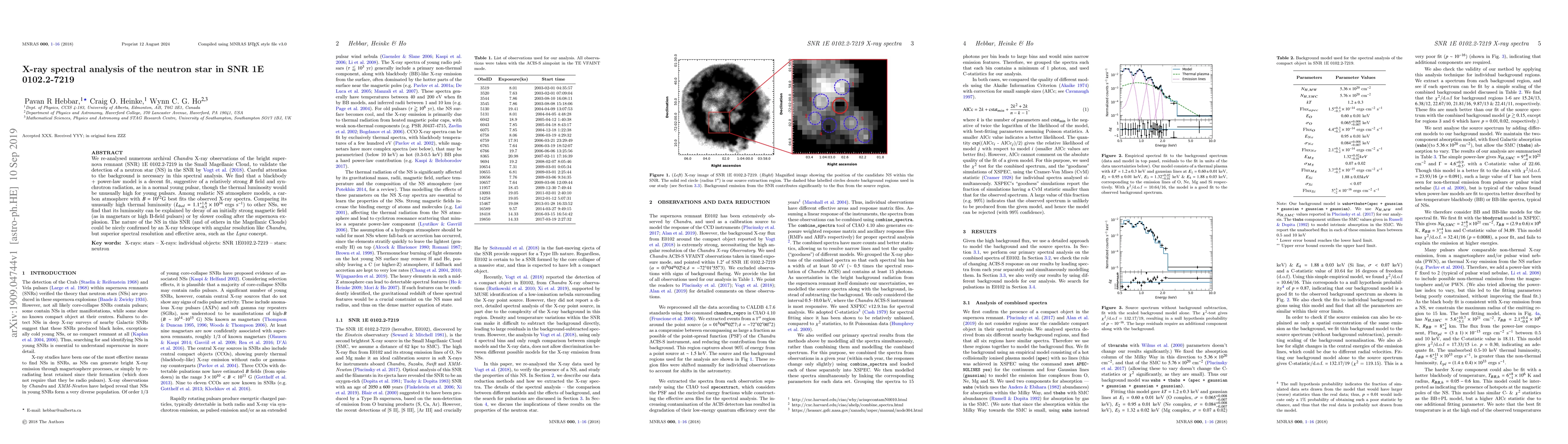 This paper re-analyzes Chandra X-ray observations of SNR 1E 0102.2-7219 to confirm a neutron star's presence, finding a blackbody + power-law spectral fit indicative of strong magnetic fields and synchrotron radiation. The unusually high thermal luminosity suggests either a decaying strong magnetic field or slower cooling post-supernova.