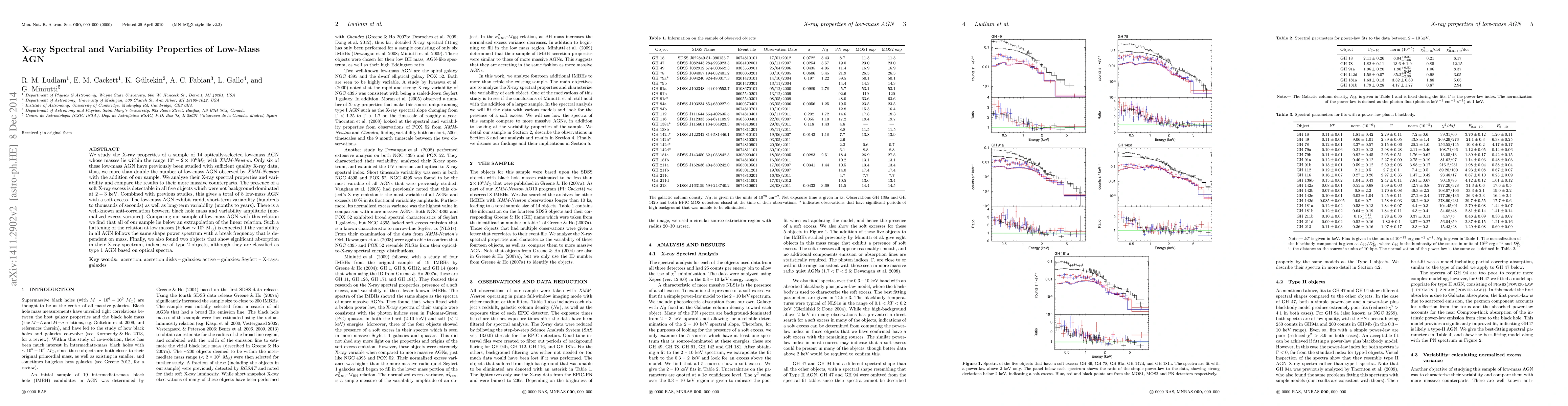 The paper presents detailed X-ray spectral analysis and variability studies of low-mass AGN using XMM-Newton data, identifying a soft X-ray excess and rapid variability in these objects.
