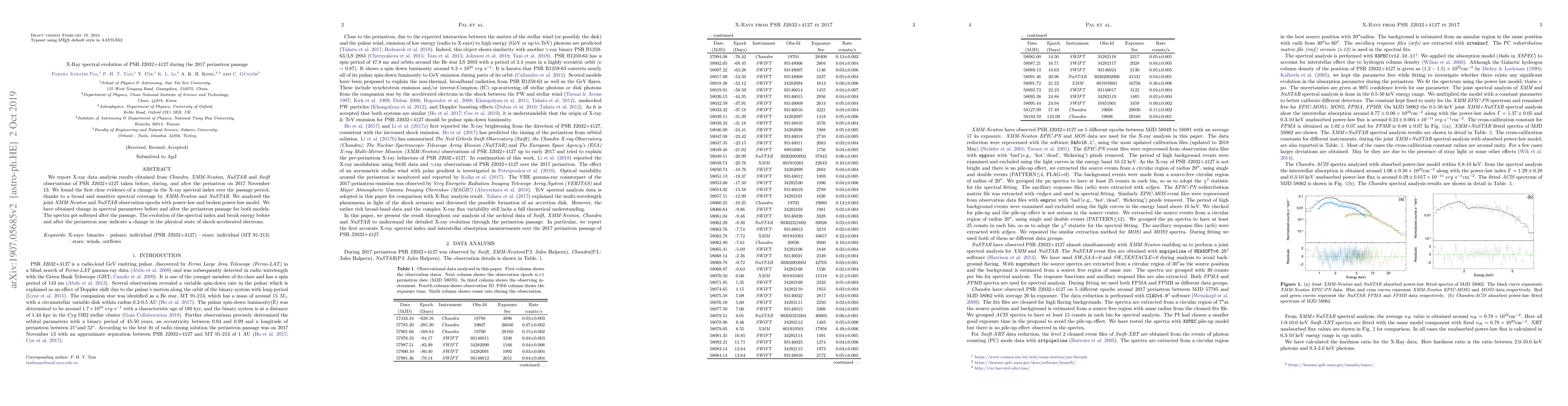Researchers observed a change in X-ray spectral index of PSR J2032+4127 during its 2017 periastron passage, suggesting a change in the physical state of shock-accelerated electrons.