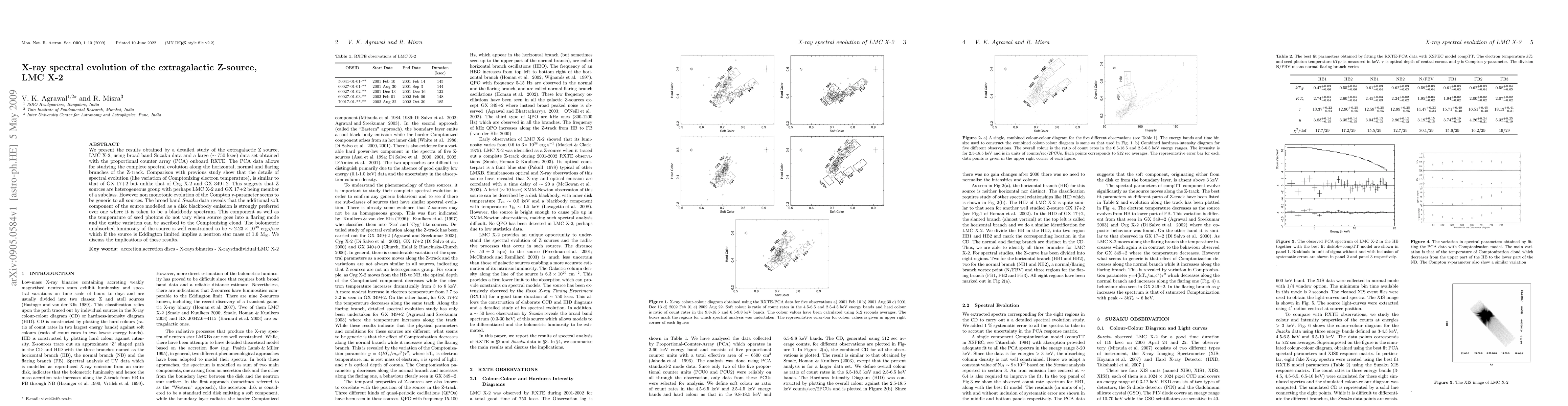 We present the results obtained by a detailed study of the extragalactic Z source, LMC X-2, using broad band Suzaku data and a large ($ \sim 750$ ksec) data set obtained with the proportional counter array (PCA) onboard RXTE. The PCA data allows for studying the complete spectral evolution along the horizontal, normal and flaring branches of the Z-track. Comparison with previous study show that the details of spectral evolution (like variation of Comptonizing electron temperature), is similar to that of GX 17+2 but unlike that of Cyg X-2 and GX 349+2. This suggests that Z sources are heterogeneous group with perhaps LMC X-2 and GX 17+2 being member of a subclass. However non monotonic evolution of the Compton y-parameter seems to be generic to all sources. The broad band {\it Suzaku} data reveals that the additional soft component of the source modelled as a disk blackbody emission is strongly preferred over one where it is taken to be a blackbody spectrum. This component as well as the temperature of seed photons do not vary when source goes into a flaring mode and the entire variation can be ascribed to the Comptonizing cloud. The bolometric unabsorbed luminosity of the source is well constrained to be $ \sim 2.23 \times 10^{38}$ ergs/sec which if the source is Eddington limited implies a neutron star mass of 1.6 M$_\odot$. We discuss the implications of these results.