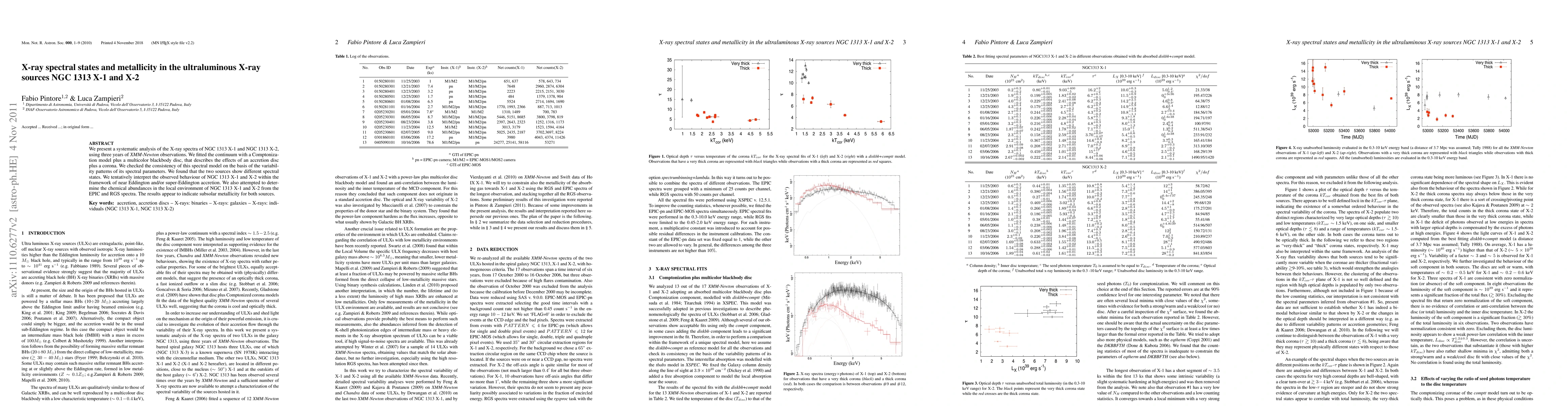 We present a systematic analysis of the X-ray spectra of NGC 1313 X-1 and NGC 1313 X-2, using three years of XMM-Newton observations. We fitted the continuum with a Comptonization model plus a multicolor blackbody disc, that describes the effects of an accretion disc plus a corona. We checked the consistency of this spectral model on the basis of the variability patterns of its spectral parameters. We found that the two sources show different spectral states. We tentatively interpret the observed behaviour of NGC 1313 X-1 and X-2 within the framework of near Eddington and/or super-Eddington accretion. We also attempted to determine the chemical abundances in the local environment of NGC 1313 X-1 and X-2 from the EPIC and RGS spectra. The results appear to indicate subsolar metallicity for both sources.