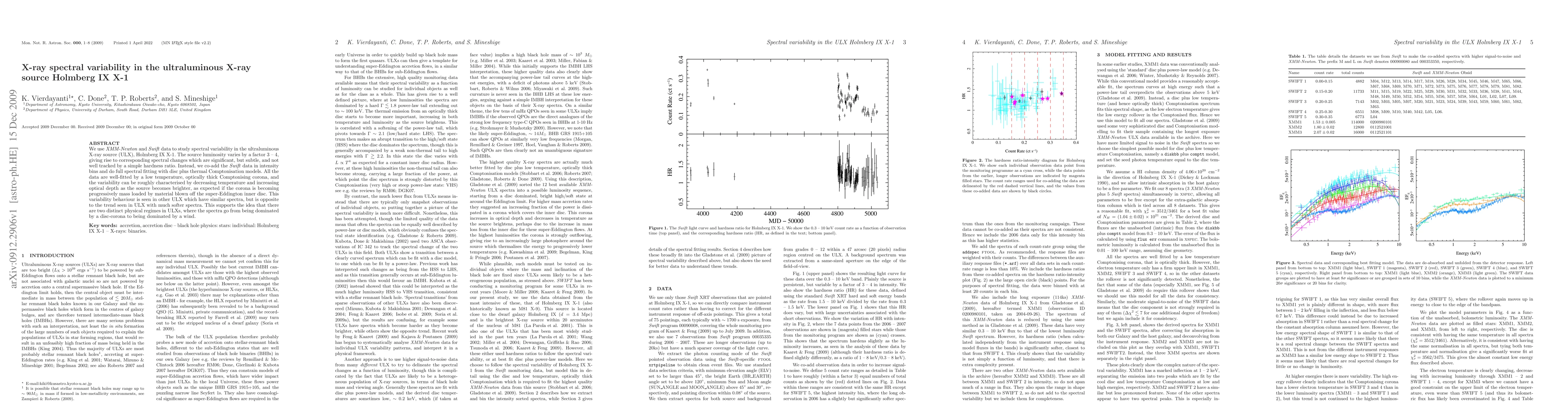 This study investigates spectral variability in the ultraluminous X-ray source Holmberg IX X-1 using XMM-Newton and Swift data, revealing a trend of decreasing temperature and increasing optical depth with increasing brightness, indicative of a mass-loaded corona. This behavior supports the notion of two distinct physical regimes in ultraluminous X-ray sources.