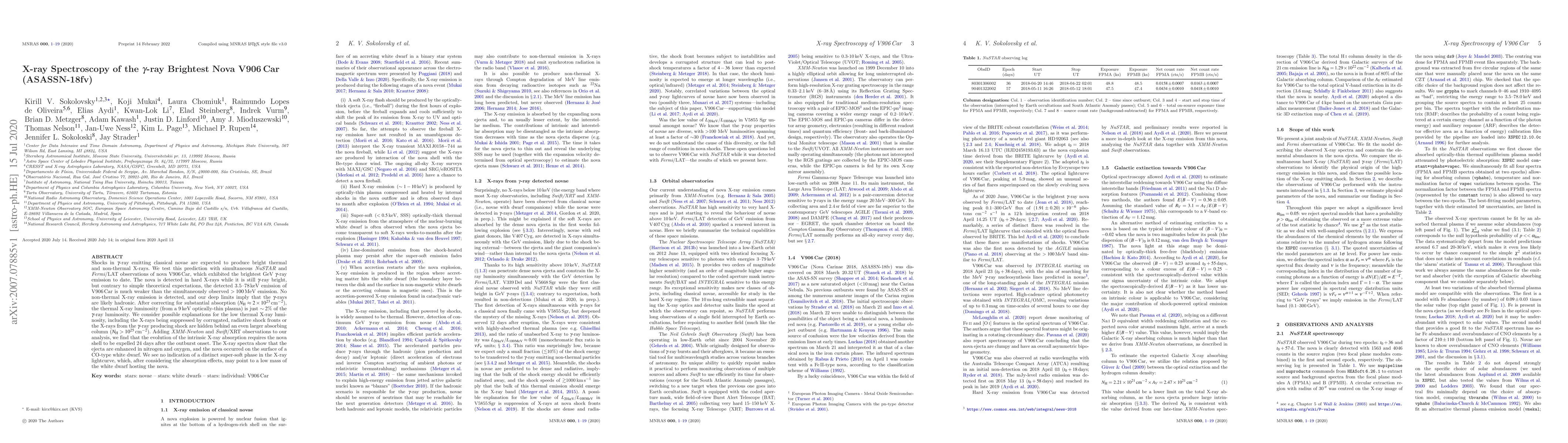 Shocks in gamma-ray emitting classical novae are expected to produce bright thermal and non-thermal X-rays. We test this prediction with simultaneous NuSTAR and Fermi/LAT observations of nova V906 Car, which exhibited the brightest GeV gamma-ray emission to date. The nova is detected in hard X-rays while it is still gamma-ray bright, but contrary to simple theoretical expectations, the detected 3.5-78 keV emission of V906 Car is much weaker than the simultaneously observed >100 MeV emission. No non-thermal X-ray emission is detected, and our deep limits imply that the gamma-rays are likely hadronic. After correcting for substantial absorption (N_H ~ 2 x 10^23 cm^-2), the thermal X-ray luminosity (from a 9 keV optically-thin plasma) is just ~2% of the gamma-ray luminosity. We consider possible explanations for the low thermal X-ray luminosity, including the X-rays being suppressed by corrugated, radiative shock fronts or the X-rays from the gamma-ray producing shock are hidden behind an even larger absorbing column (N_H >10^25 cm^-2). Adding XMM-Newton and Swift/XRT observations to our analysis, we find that the evolution of the intrinsic X-ray absorption requires the nova shell to be expelled 24 days after the outburst onset. The X-ray spectra show that the ejecta are enhanced in nitrogen and oxygen, and the nova occurred on the surface of a CO-type white dwarf. We see no indication of a distinct super-soft phase in the X-ray lightcurve, which, after considering the absorption effects, may point to a low mass of the white dwarf hosting the nova.