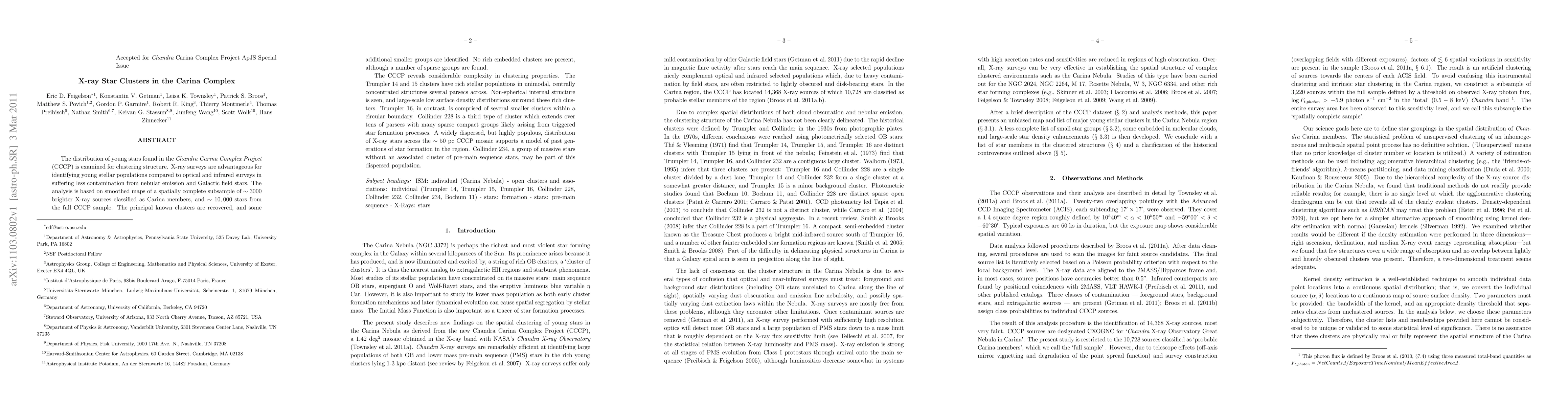 The distribution of young stars found in the Chandra Carina Complex Project (CCCP) is examined for clustering structure. X-ray surveys are advantageous for identifying young stellar populations compared to optical and infrared surveys in suffering less contamination from nebular emission and Galactic field stars. The analysis is based on smoothed maps of a spatially complete subsample of about 3000 brighter X-ray sources classified as Carina members, and about 10,000 stars from the full CCCP sample. The principal known clusters are recovered, and some additional smaller groups are identified. No rich embedded clusters are present, although a number of sparse groups are found. The CCCP reveals considerable complexity in clustering properties. The Trumpler 14 and 15 clusters have rich stellar populations in unimodal, centrally concentrated structures several parsecs across. Non-spherical internal structure is seen, and large-scale low surface density distributions surround these rich clusters. Trumpler 16, in contrast, is comprised of several smaller clusters within a circular boundary. Collinder 228 is a third type of cluster which extends over tens of parsecs with many sparse compact groups likely arising from triggered star formation processes. A widely dispersed, but highly populous, distribution of X-ray stars across the about 50 pc CCCP mosaic supports a model of past generations of star formation in the region. Collinder 234, a group of massive stars without an associated cluster of pre-main sequence stars, may be part of this dispersed population.